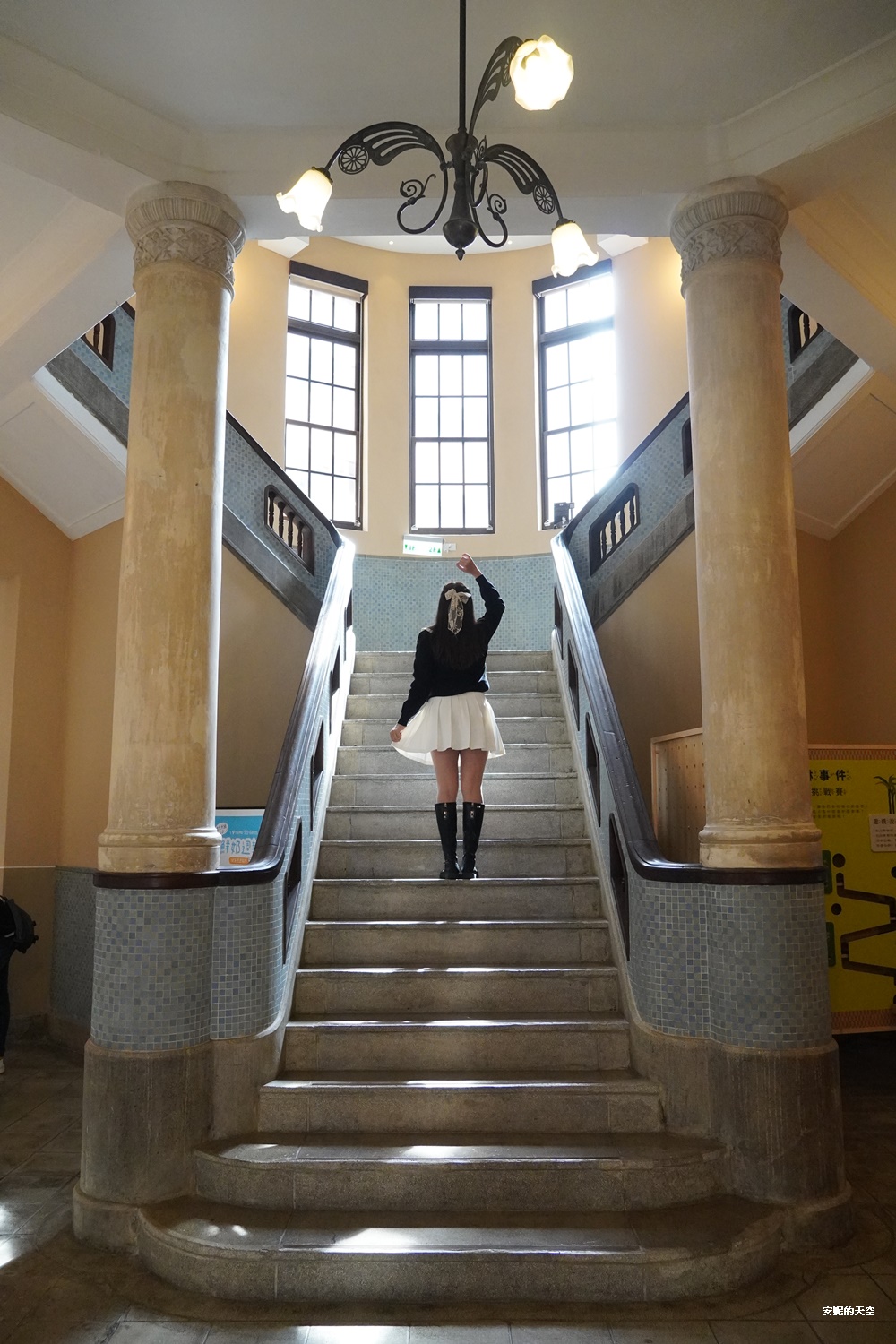 走上二樓,三大面窗戶讓自然光大量流瀉而入,光影在樓梯與牆面之間流動,營造出迷人的層次感。無論從哪個角度拍攝,都能捕捉到不同的光影表情;置身在樓梯間回望,更像走進老建築的時光場景,每個畫面都讓人忍不住多按幾次快門。