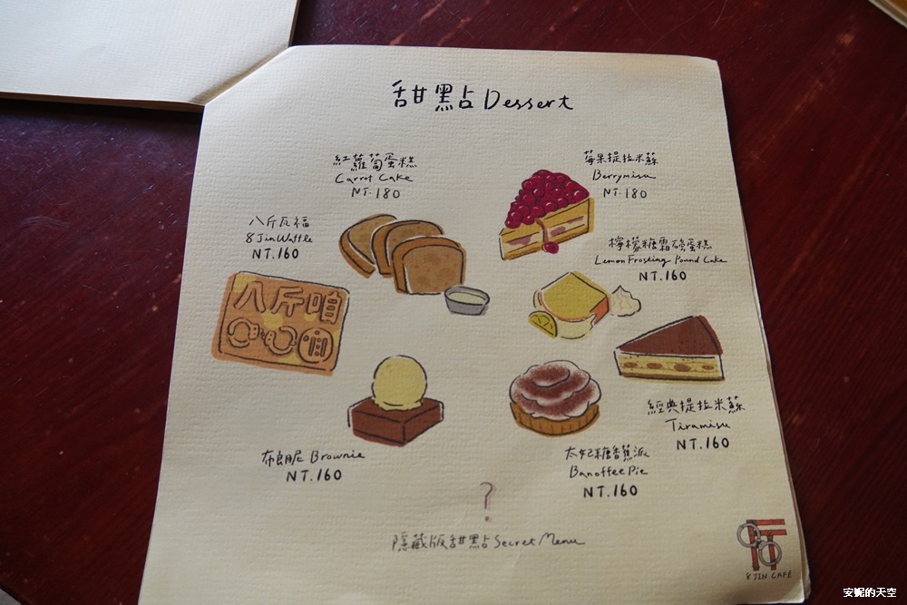這天點了冰淇淋咖啡($200)、綜合莓果氣泡飲($160)、提拉米蘇($160)、八斤瓦福 ($160)。