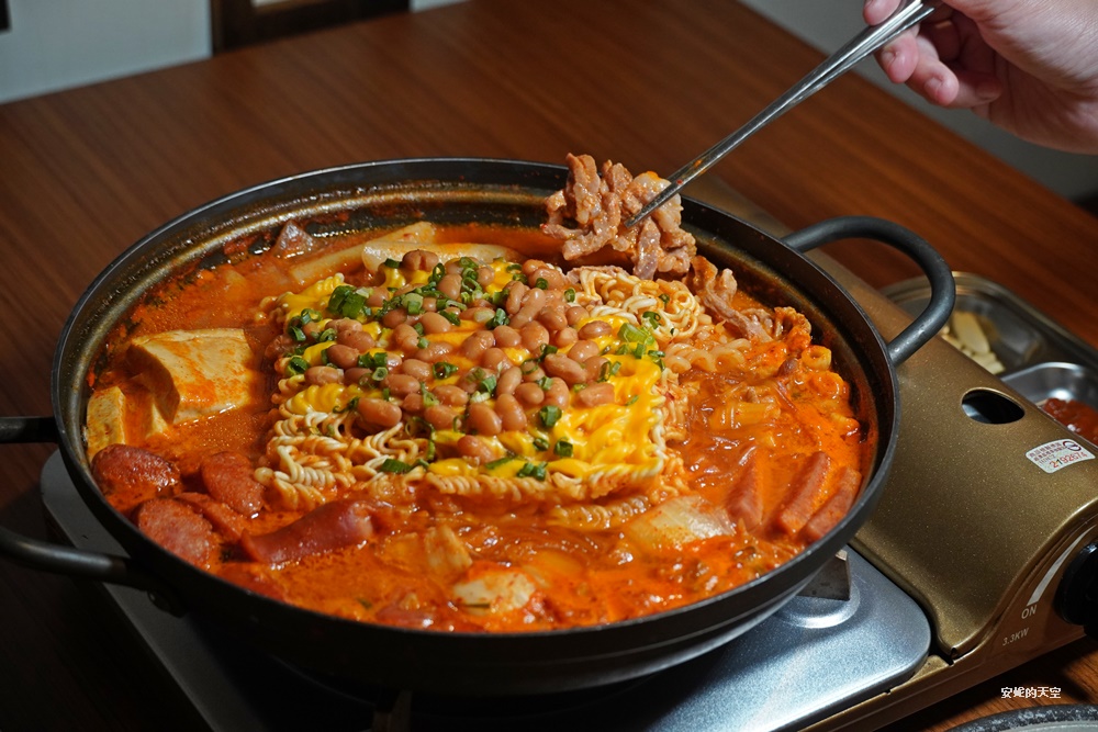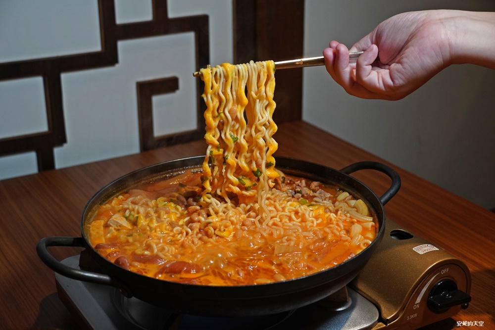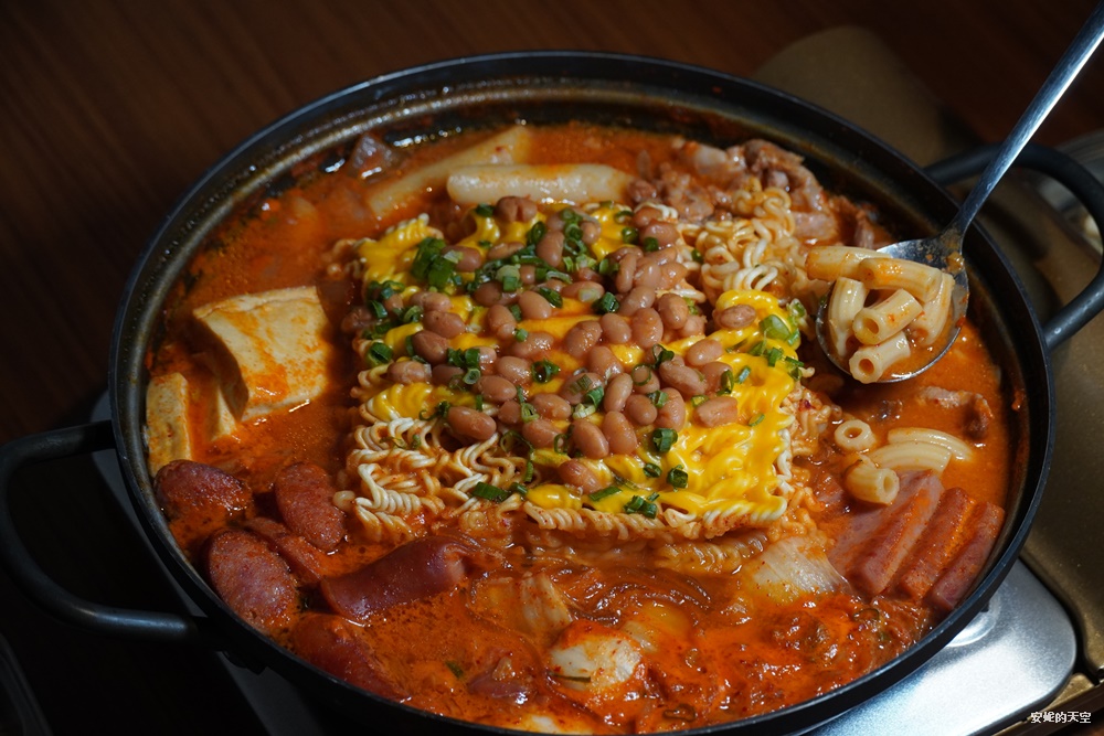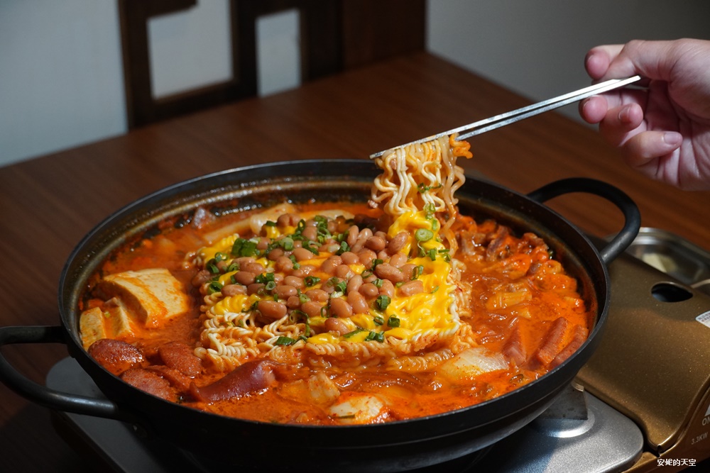 時序進入秋冬,最療癒的莫過於一鍋暖呼呼的美軍部隊鍋。以番茄與韓式辣醬熬成的湯底,酸辣交織出濃郁香氣。鍋中配料豐富:韓式泡麵吸飽湯汁、豬肉與德國臘腸交錯出鹹香層次、通心粉與起司增添滑順口感,豆腐浸潤飽滿湯頭,爽脆泡菜增添辣度,還有意想不到的納豆點綴其中。湯滾氣騰間,每一口都是秋冬最深的慰藉。