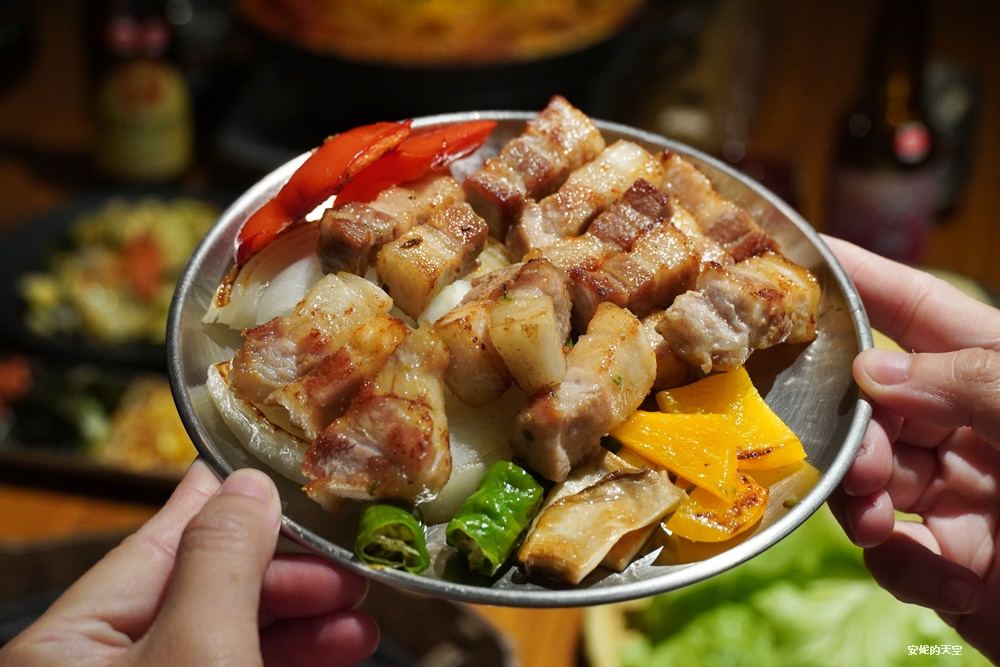 頗有厚度的豬五花更是讓我傾心,較肥的豬皮烤得很有脆度,吃起來不油膩,瘦肉的部份很嫩口,將豬五花的肉與油脂層次烤得分明,搭配烤彩椒、洋蔥,真的非常好吃。