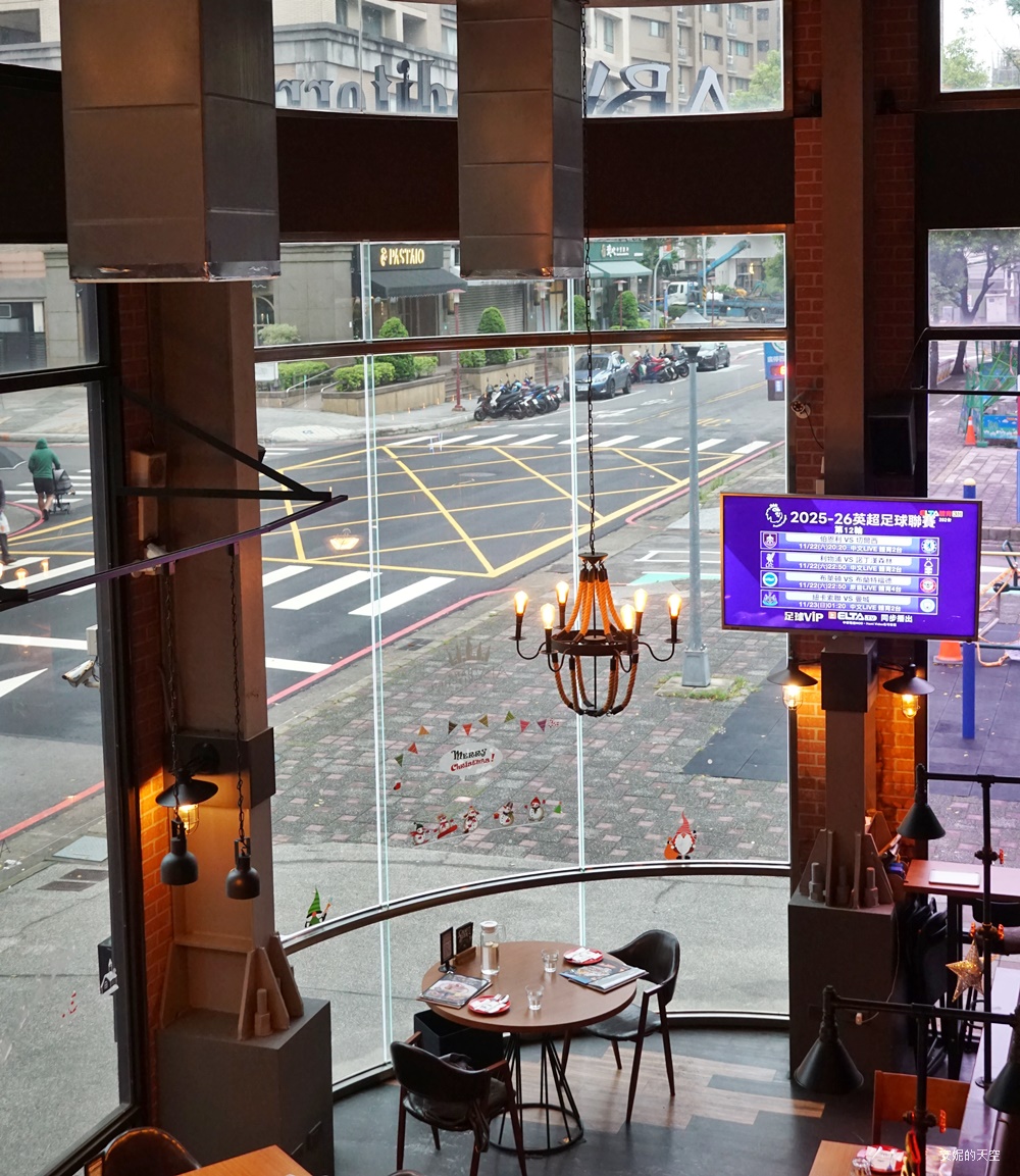 好喜歡這裡的挑高設計,餐廳以大片落地玻璃環抱,弧形的空間像是替城市拉起了一幅流動的風景畫。坐在其中看著街道上人潮穿梭,成了療癒的風景。