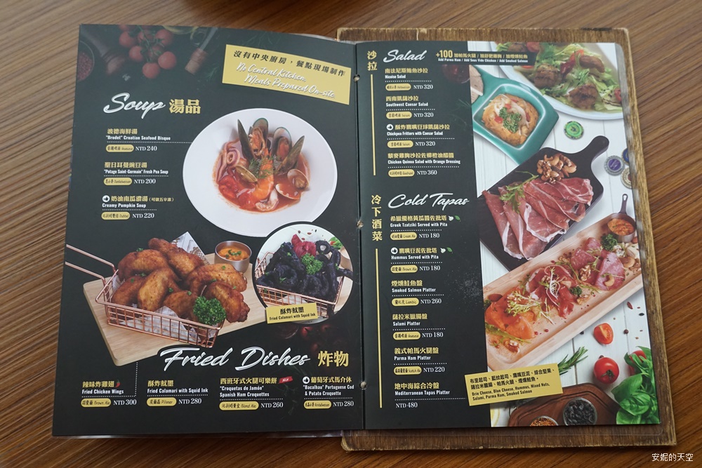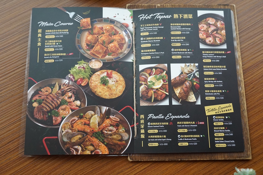 除了早午餐之外,店內也提供多款異國特色料理,從暖心的湯品、適合小酌的下酒菜、香氣濃郁的燉烤料理、薄脆歐式披薩,到經典的西班牙海鮮鍋飯,選擇真的非常豐富。