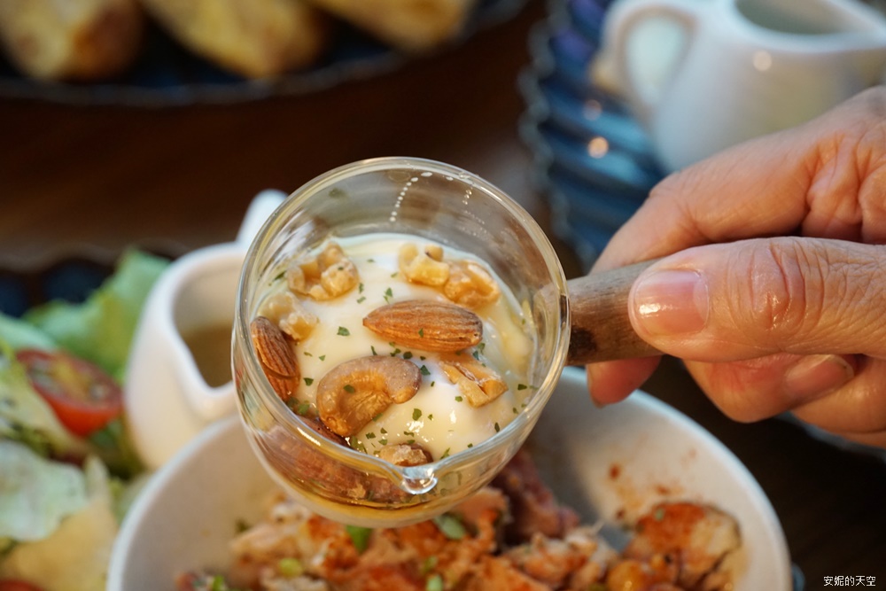 早午餐搭配的堅果優格堪稱完美!優格口感清爽、不甜膩,濃郁又滑順,裡頭加入滿滿的堅果,每一口都能嚐到香脆的口感,既美味又增添層次感。同時也恰到好處地平衡了整份餐點的份量與口味。