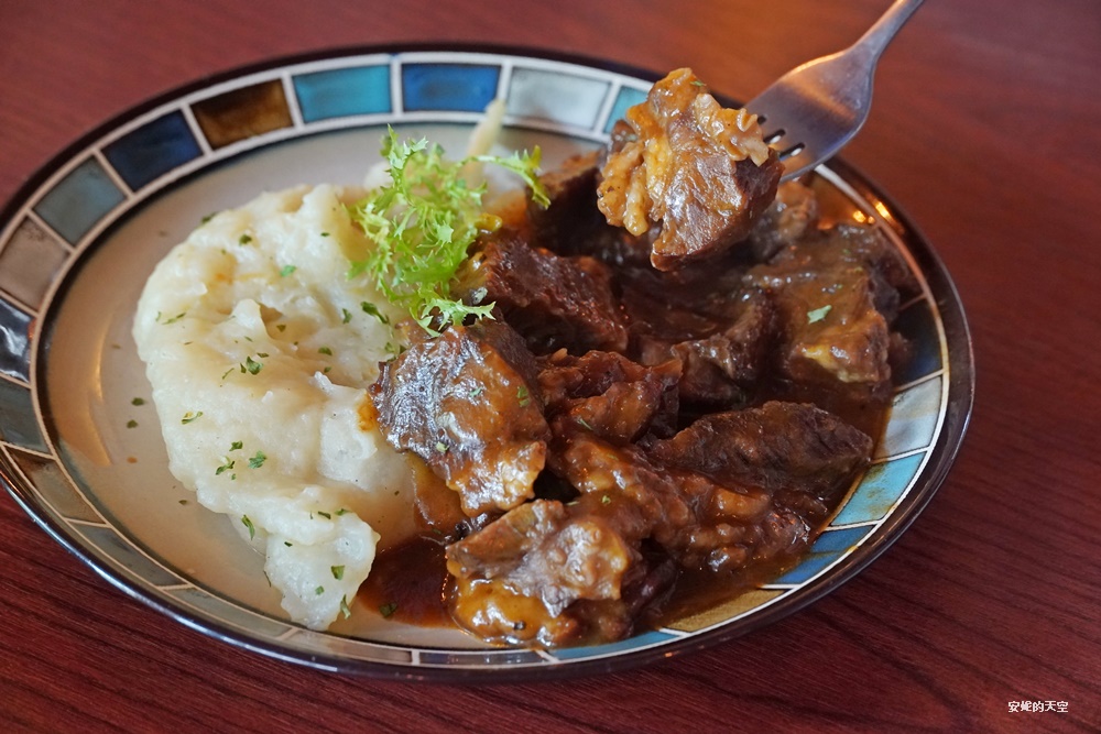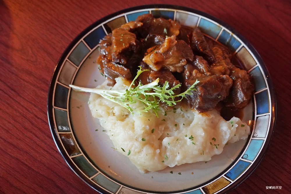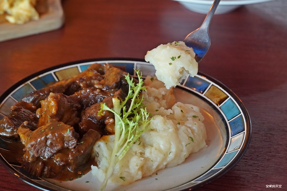 這是一道西班牙的傳統燉肉料理,特別選用口感細緻、膠質豐富的牛頰肉,與紅酒、香料、番茄及多種蔬菜一同慢火燉煮。紅酒的香氣與酸甜滲透入肉,讓牛頰肉軟嫩入味、入口即化。搭配綿密滑順的馬鈴薯泥,更襯出燉肉的濃郁與層次,是一道溫潤又充滿靈魂的西班牙家常菜,適合細細品嚐,也讓人回味無窮。