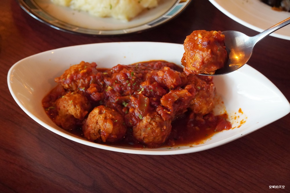 一顆顆包裹辣番茄醬的臘腸肉丸也是超經典的西班牙TAPAS下酒菜,丸子用臘腸製作,一顆顆渾圓丸子搭配辣番茄與紅椒粉與小茴香交織的醬料,脆脆口感與甜辣香氣讓人一口接一口停不下來。外層微酥、內裡紮實多汁,臘腸的鹹香融合辣番茄的酸辣,吃起來濃郁又帶勁,嘴裡充滿香料的層次變化。搭配冰涼啤酒或紅酒,真的超級過癮,是西班牙小酒館裡最不能錯過的經典滋味。