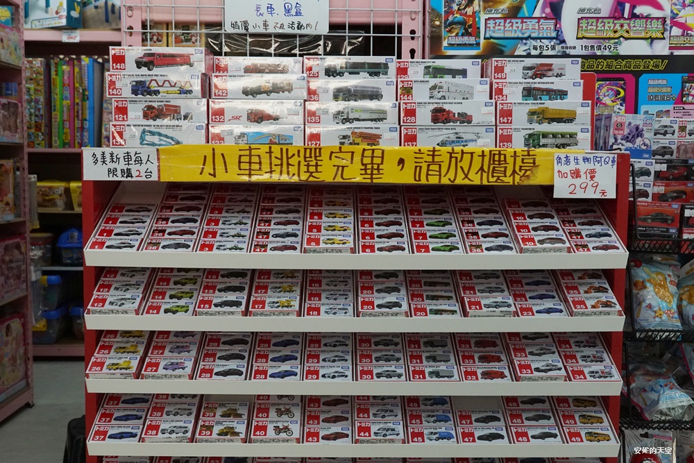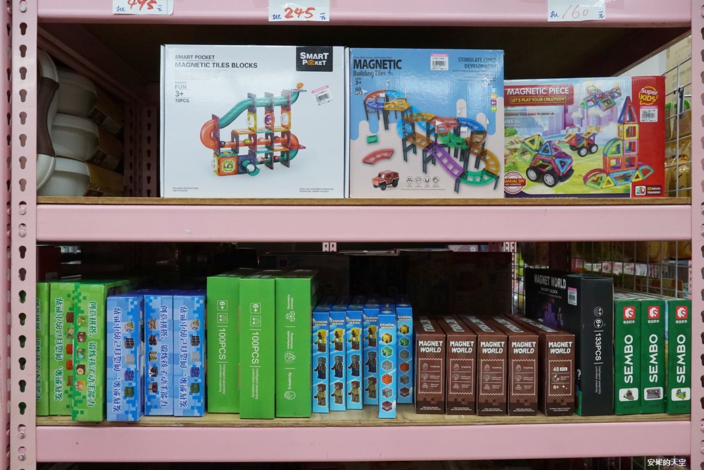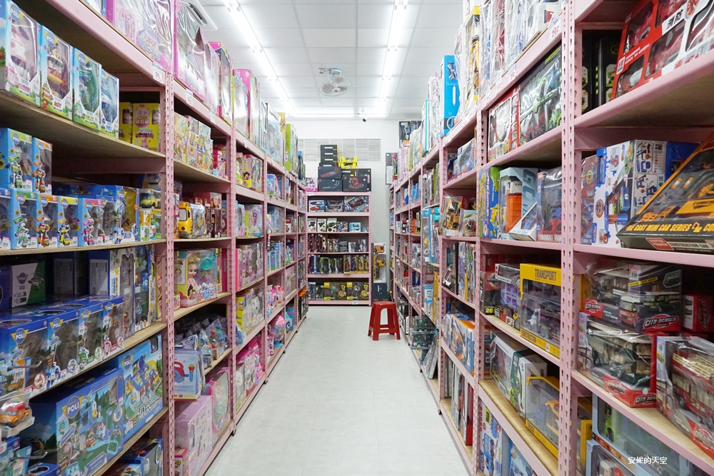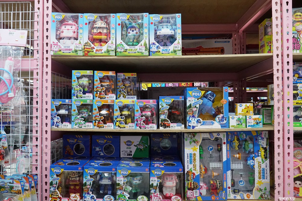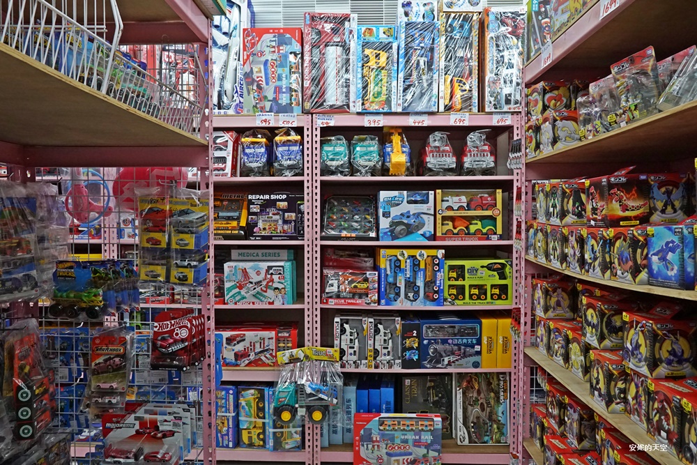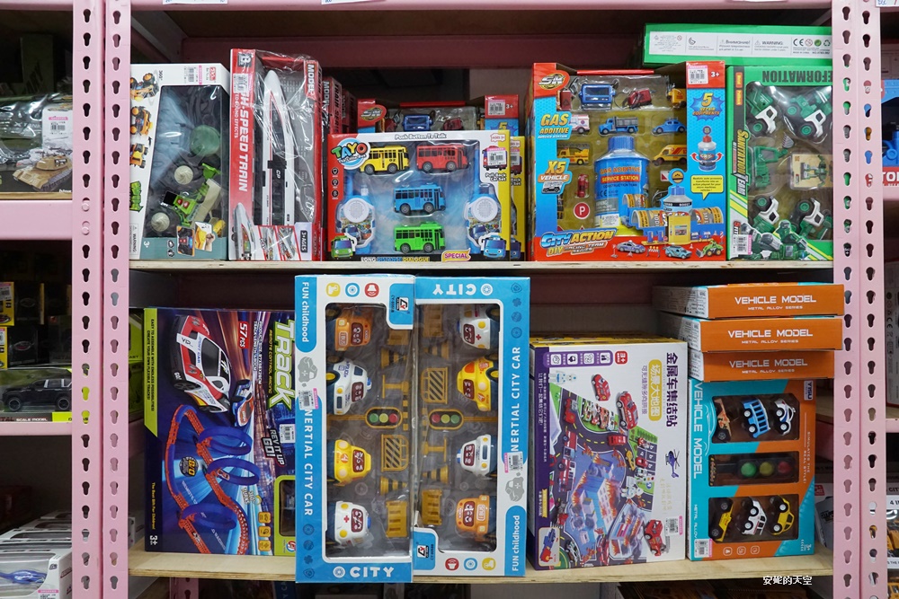 雖然是玩具批發,但整體櫃架都很乾淨,很好挑選,因為物件太多,大型的車子系列都放在貨架上,大家掃貨時不妨抬起頭看看貨架上面有沒有寶物。