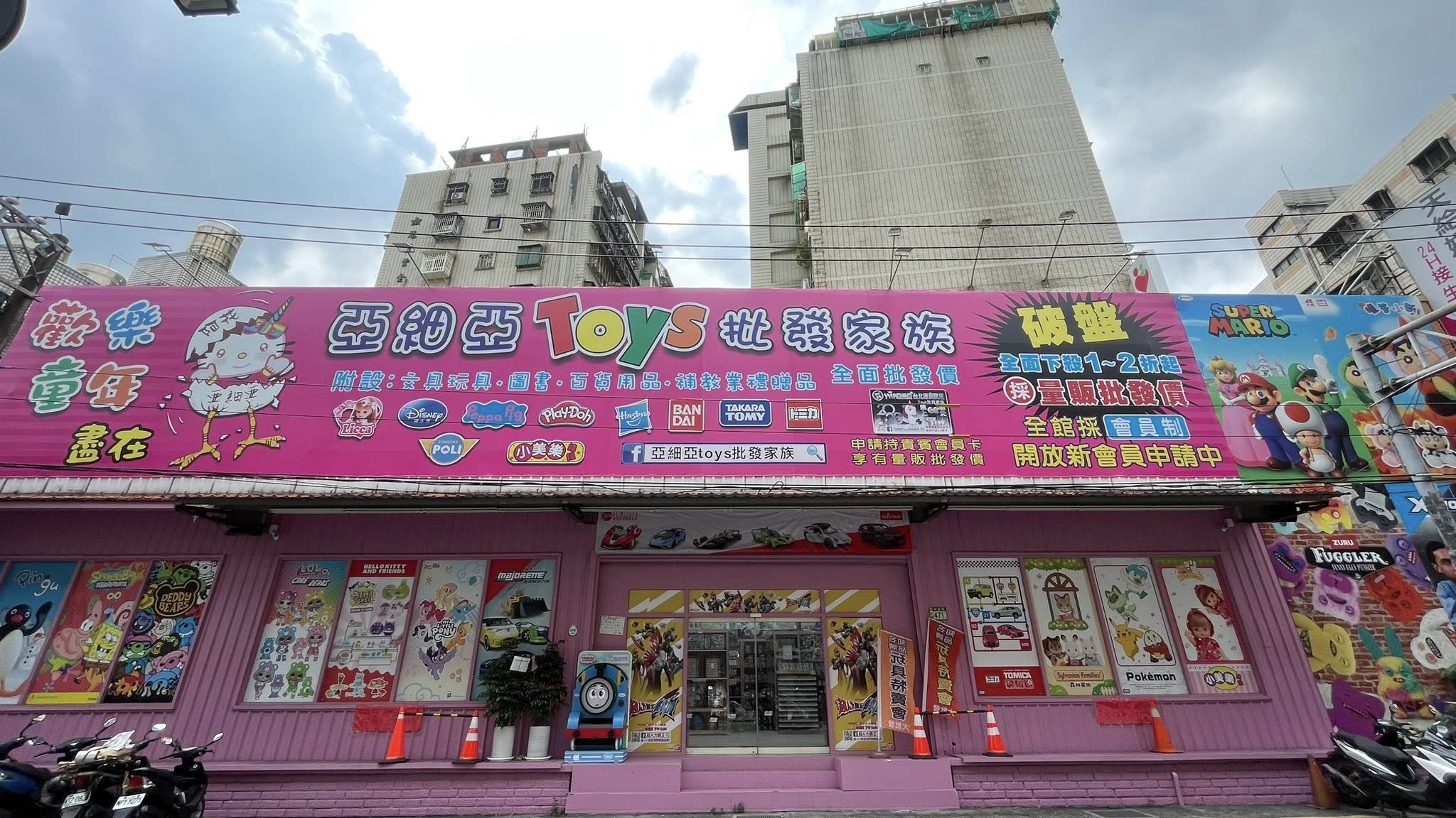 【新莊亞細亞Toys批發家族】就位在新莊中港路上,距離捷運環狀線【幸福站】約步行15分鐘,距離熱鬧的幸福路商圈不遠,大大的粉紅牆與醒目招牌,走過路過都很難不被吸引!