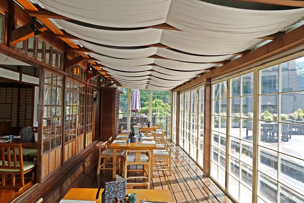古蹟修復之後,恢復最初的和式樣貌,有付書院、床之間、違棚、欄間等日式元素,光外是觀音台,可近看丹鳳山、遠眺觀音山,在這裡用餐,光是品味建築,就讓人回味不已。