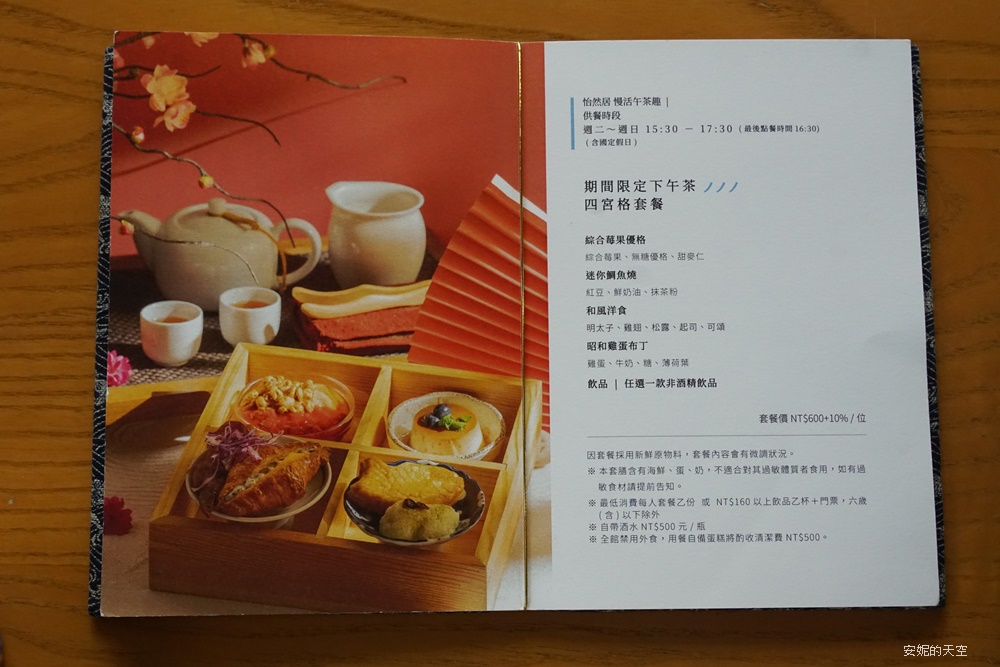 怡然居慢活下午茶 供餐時間: 15:30-17:30,為四宮格套餐。
