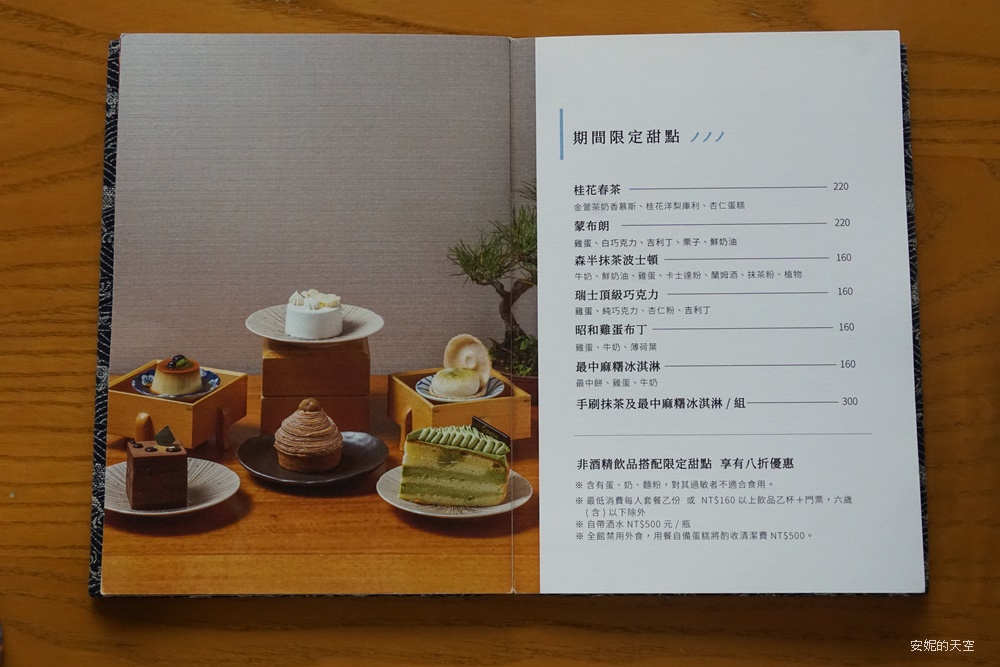 在這裡用餐時間設定為90分鐘,價格分別為: