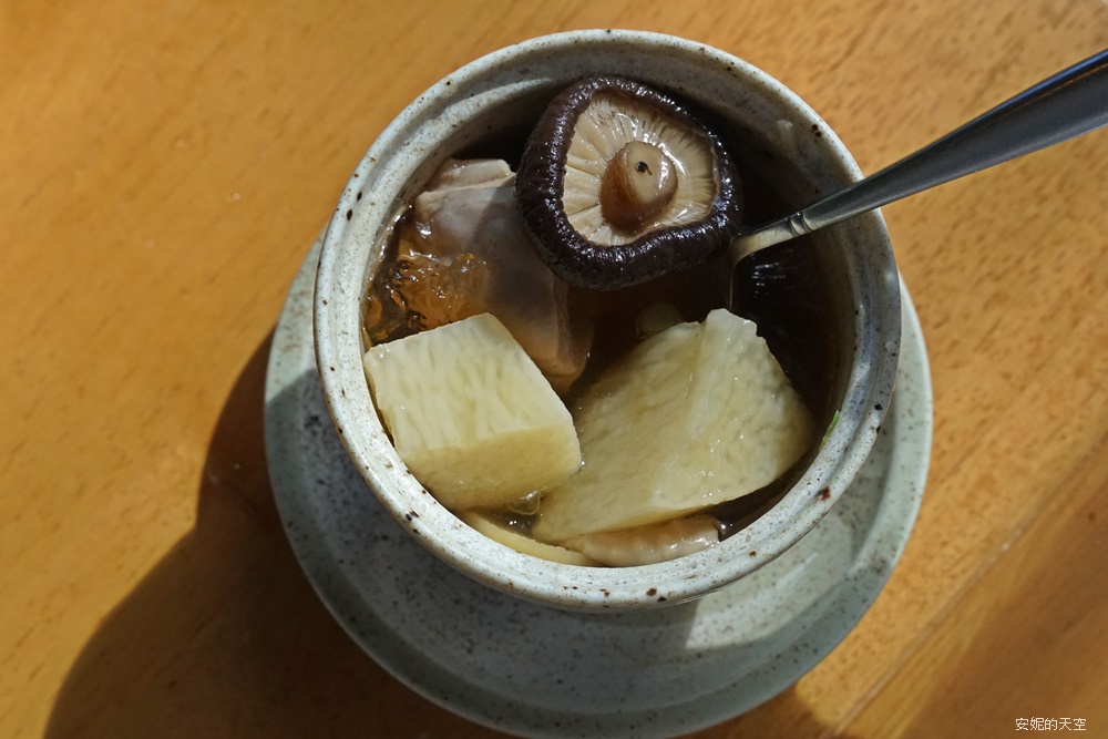 這盅湯品相當特別,以山藥與桃膠慢火煨煮成雞湯,喝起來溫潤又舒服。濃郁的雞湯香氣在口中散開,搭配QQ的桃膠,讓整體口感更加豐富、有層次。