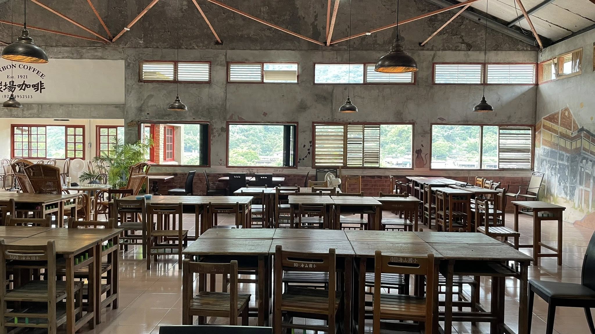 這座矗立山城上的碳場咖啡,超大場域擺滿了小學生的木造課桌椅,座位數非常多,可以容客數很多,敞開的窗螢進涼爽自然風,這裡沒有空調,但涼風扇與自然風就已足夠讓人感到舒服,目前經營碳場咖啡的是一位老先生,感覺是佛系經營,這裡知道的人不多,但老闆依舊堅守崗位,親切的服務造訪的旅客。