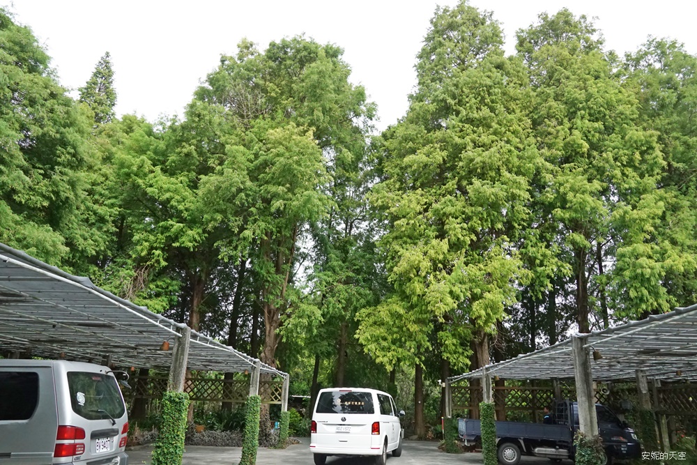 車緩緩駛進菁芳園,還沒到園方,戶外就是一整片的樹林,流連停車場也是美不勝收,造訪的當下是11月,落羽松還是綠油油一片,朋友1月造訪落羽松已經全面轉紅,冬季造訪的氛圍更美,也讓我暗暗立下下一回造訪一定要在落羽松變色的時候。