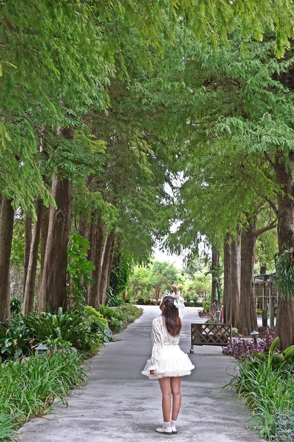 這座落羽松步道超級美的,落羽松雖然高大,但松葉位置特別低矮,整個步道像是被落羽松覆蓋著,滿滿綠色天幕超美的。