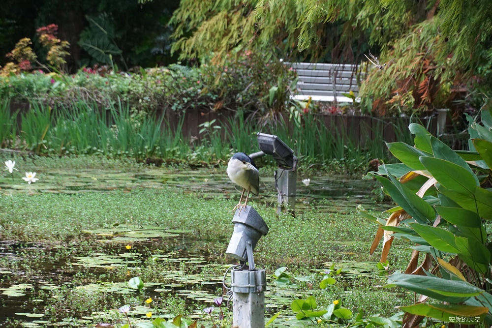 玻璃屋與落羽松步道間,有一大片的溼地水池,上面有滿滿的睡蓮與水生植物,水波蕩漾倒映著綠意,這裡的生態相當的豐富,環境也很乾淨,在這裡散步很舒服。