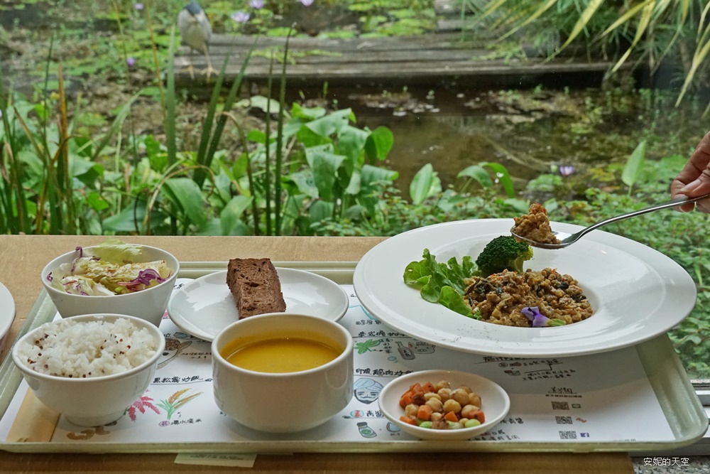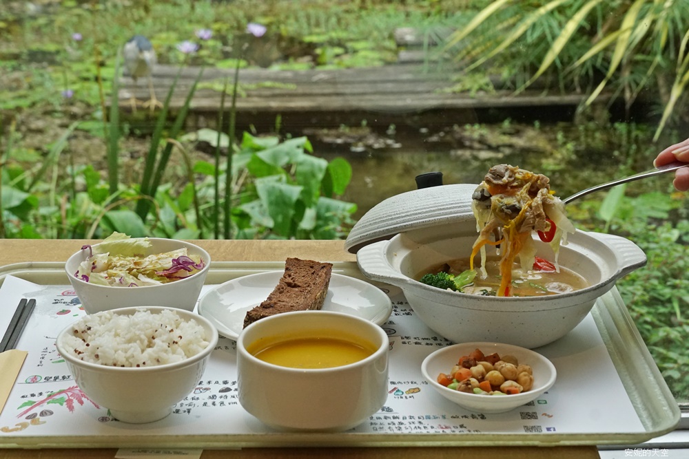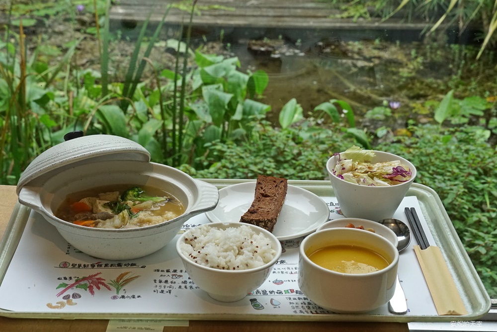 隨便一個視角,都像在明信片裡,滿滿的植栽包圍,充滿空靈感,特別推薦坐在窗邊,旁邊就是溼地水池,造景相當的用心別緻,一邊用餐一邊欣賞戶外景致,心情都不禁好了起來。