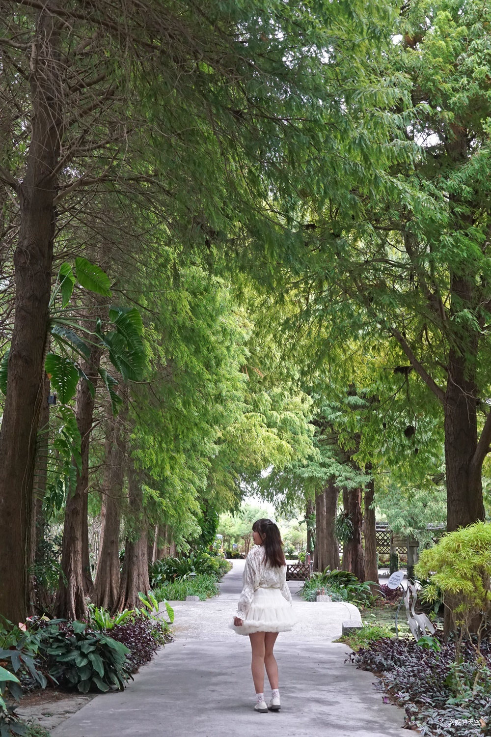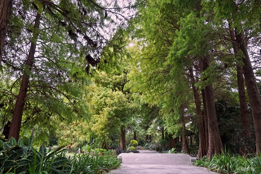 這座落羽松步道超級美的,落羽松雖然高大,但松葉位置特別低矮,整個步道像是被落羽松覆蓋著,滿滿綠色天幕超美的。