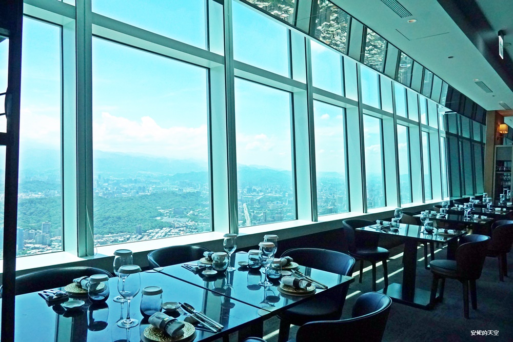 【隨意鳥地方】101景觀餐廳的用餐空間寬敞舒適,大多數座位都緊鄰落地玻璃帷幕,讓人能在用餐的同時,飽覽台北市的壯麗景致。從高樓俯瞰,信義區的繁華街景、遠方的山巒起伏、甚至天氣好時的淡水河線,都一覽無遺。