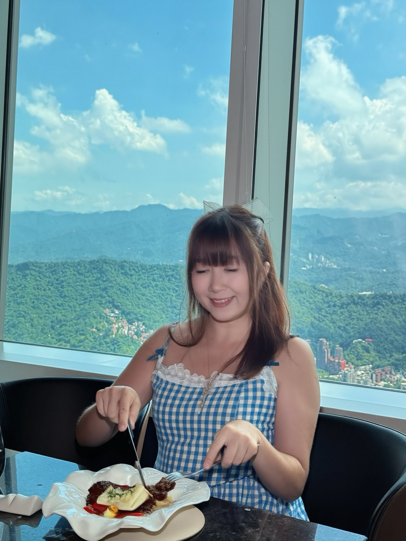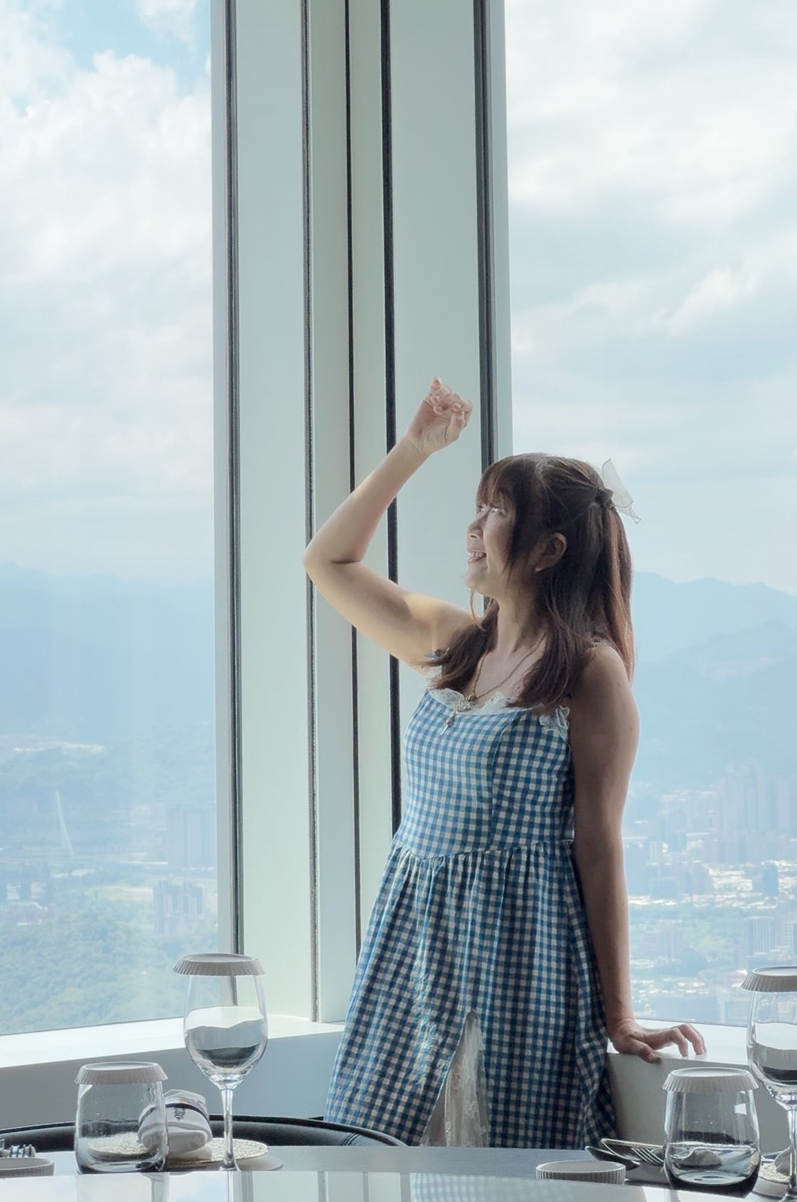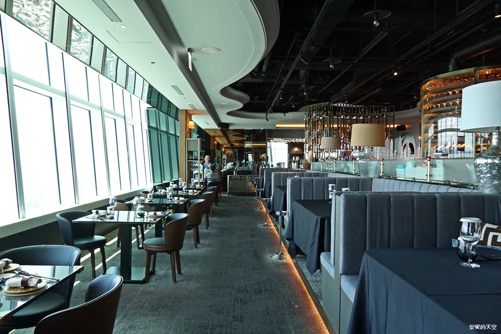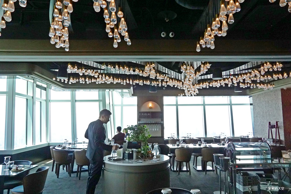 這樣的視野無疑是餐廳的一大亮點,不只是來這裡享用美食,更像是在城市上空,體驗一場視覺與味覺並進的奢華饗宴。這天白天的陽光灑落,景觀超讓人震撼,下回想要體驗城市的萬家燈火,我想一定更美。
