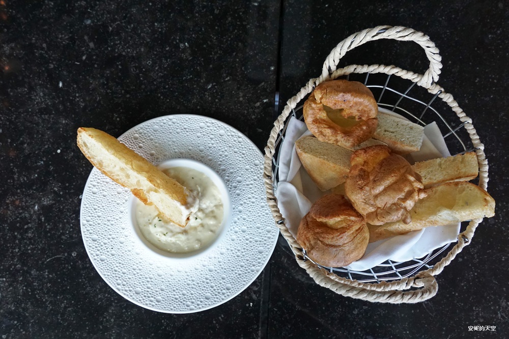 餐前每個人都會有三款麵包搭配一盤奶油蟹肉,麵包可以搭配奶油蟹肉一起食用,隨意鳥地方的麵包真的讓我驚為天人,佛卡夏、約克夏以及蒜麵包,每一款都好香酥好吃,就連佛卡夏也好柔軟,奶油蟹肉與面包超搭的,單吃也很綿密,原本擔心吃完麵包會吃不下後面的餐根本是多慮,好吃到會想要再續盤。