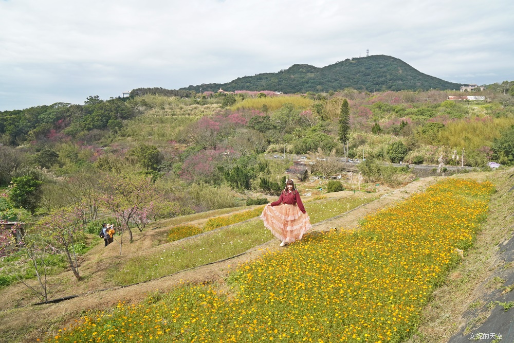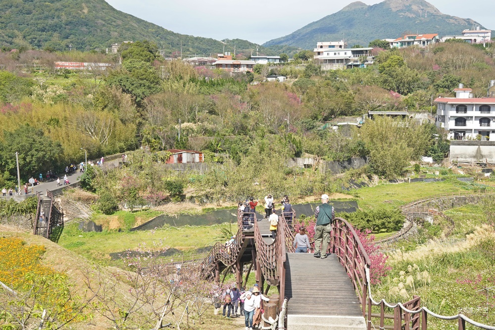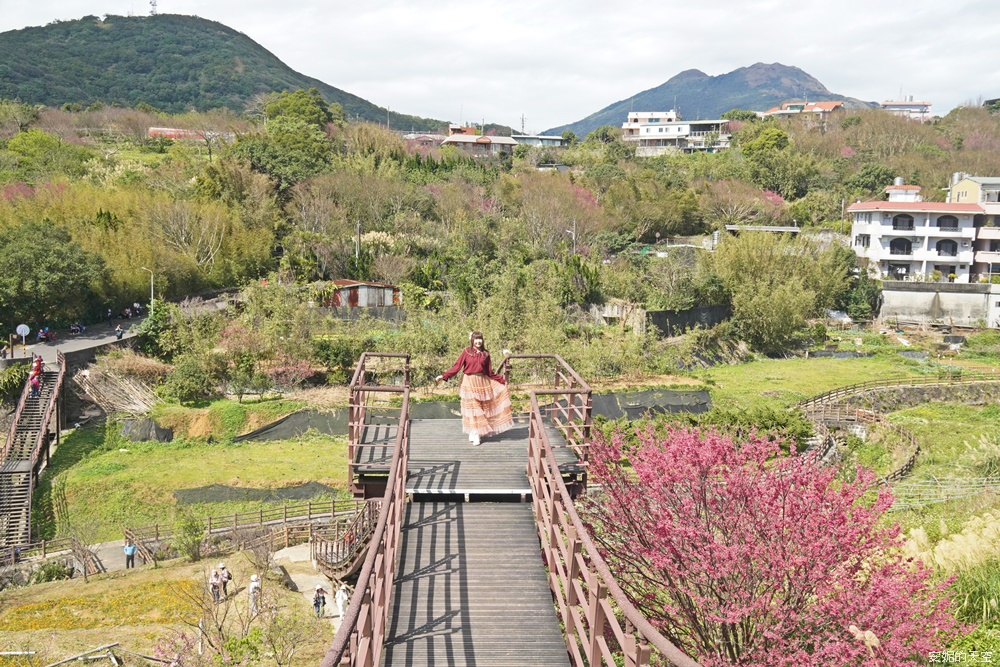 平菁街櫻花滿開中|台北陽明山第一波賞櫻景點,搭公車輕鬆賞櫻,順遊鵝尾山梯田,美如走進莫內畫作。