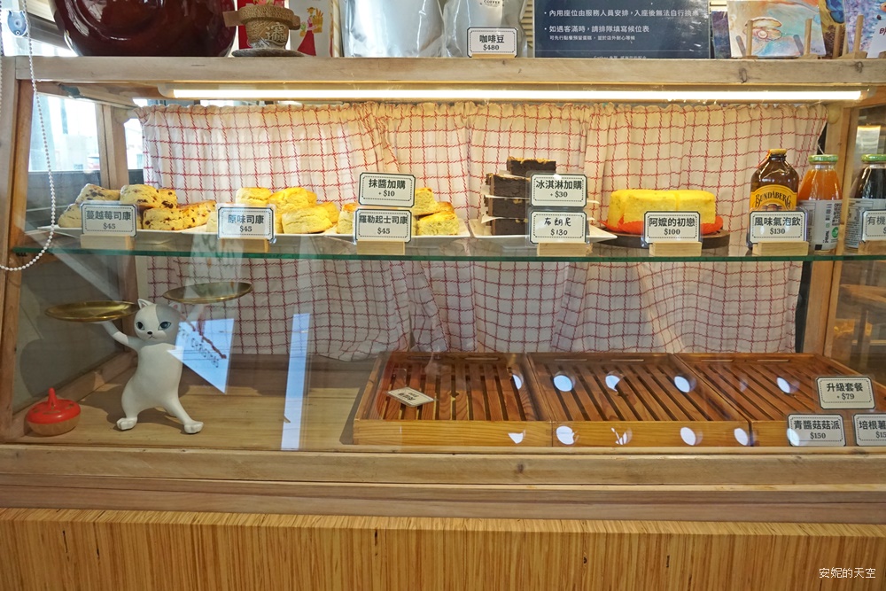 食聚咖啡低消為200元,不一定要點飲料,這點我覺得很多人都會欣然接受,櫥窗內的甜點種類相當多,這天大約11:00造訪,店內雖然是客滿狀態,但甜點櫃的甜點依舊擺得滿滿滿,繽紛的甜點口味讓人眼花撩亂,每一款甜點都好想吃啊。