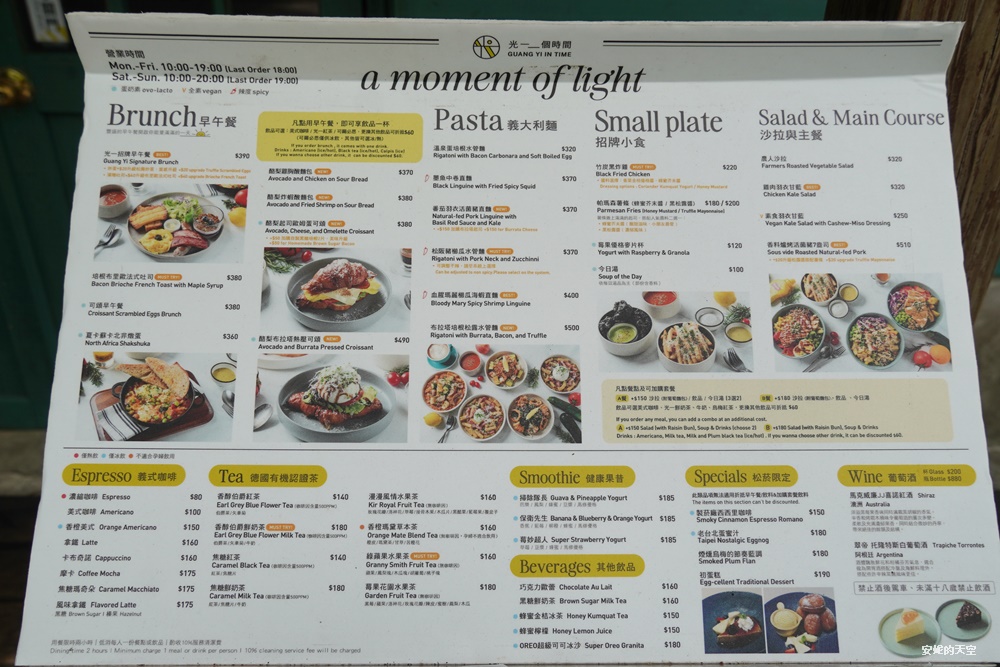 光一一個時間餐點非常多元,有義大利麵、早午餐、生菜沙拉,竟然還有酪梨控會愛的酪梨餐點。