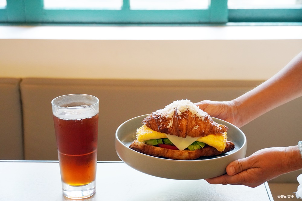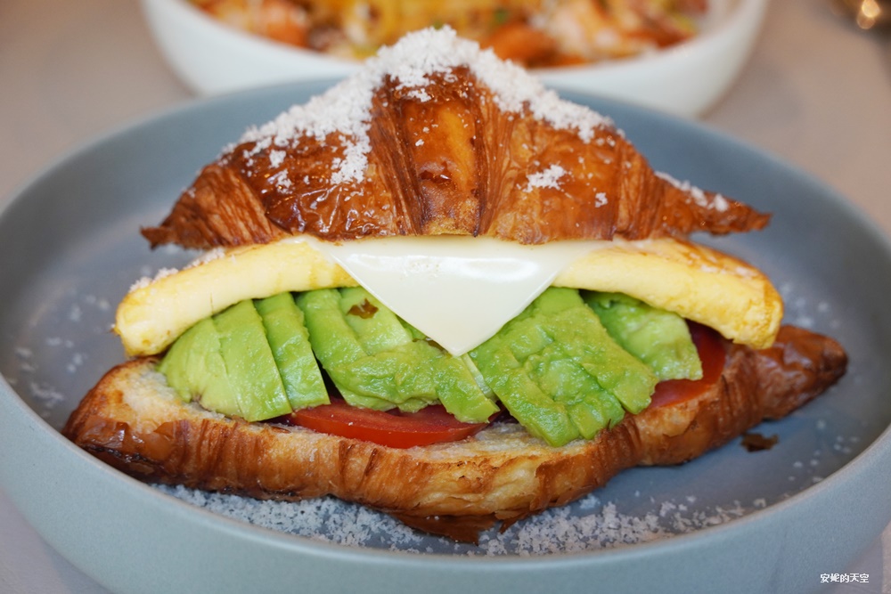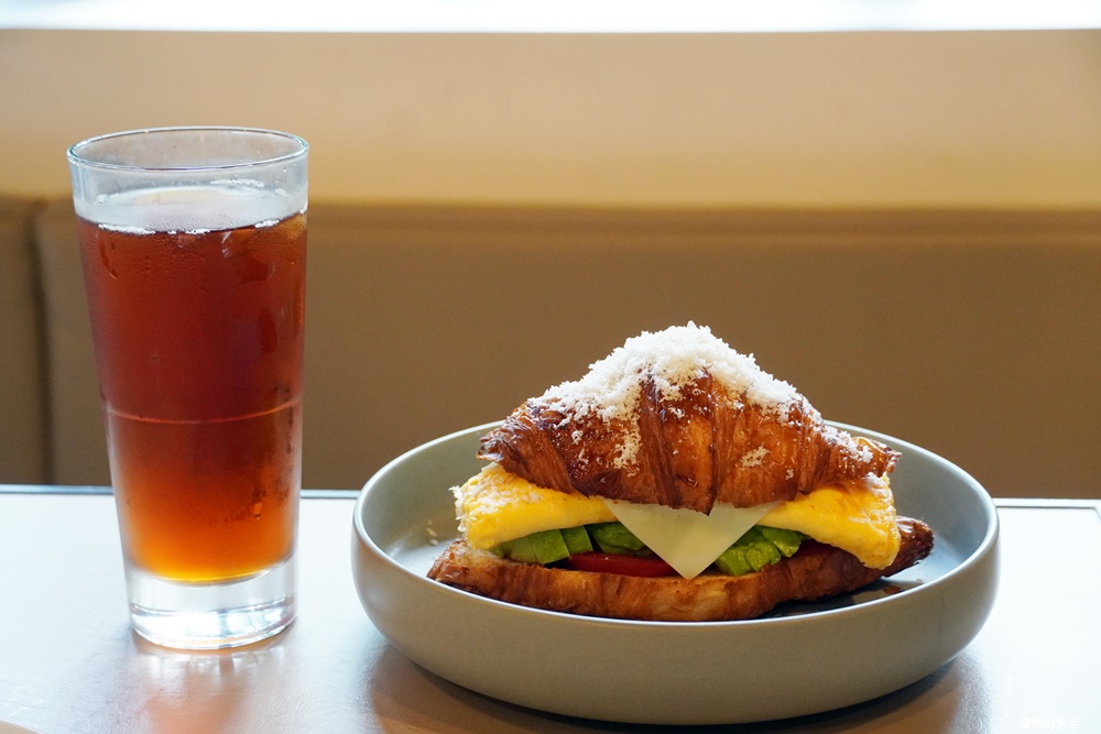 好喜歡這份餐點,酥脆的可頌裡面有滿滿厚實的酪梨片,喜歡酪梨的朋友一定能懂酪梨的美好,加上厚實的歐姆蛋以及起司,可頌相當酥脆,非常好吃,灑上起司超級美味,酪梨與番茄切片搭配得宜,起司與歐姆蛋增添飽足感與蛋香奶香,能在一早吃到這樣的早午餐餐點真的好幸福。
