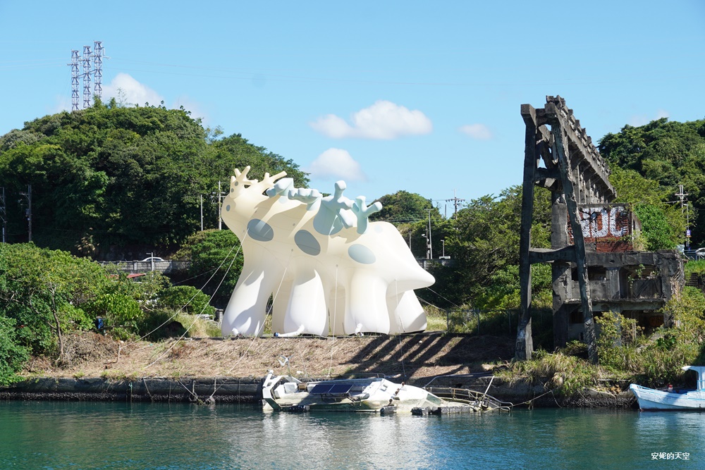 之後搭乘公車前往【基隆塔】,遠眺基隆市區與山海交錯的風景,基隆塔與信二防空洞都有精彩的展品作品;再轉乘前往【漁會正濱大樓】,從那裡步行至傳說中的阿根納造船廠,準備迎接壓軸亮點——「巨大光獸」。