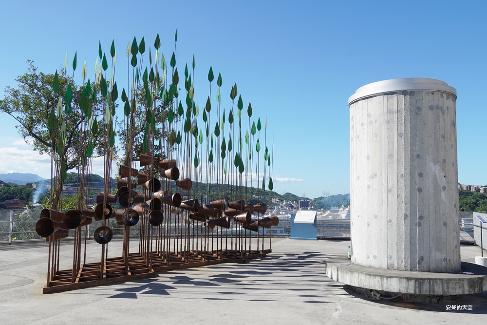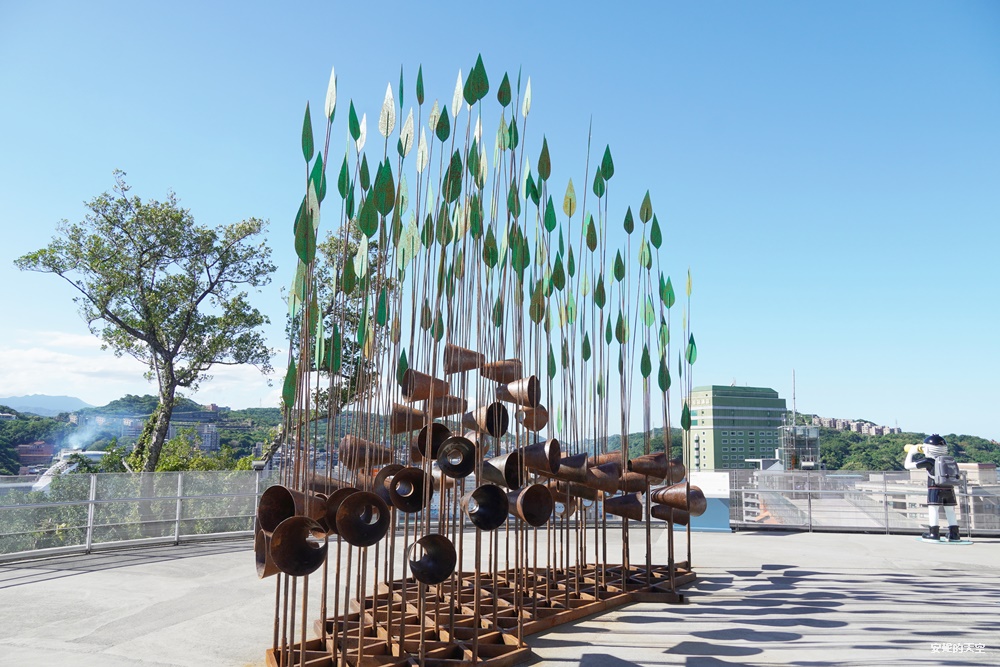 隨風搖曳的聲物,是由王仲堃與其藝術團隊【先驗物件】打造的藝術展品,數支由金屬製成,如植物般生長的雕塑裝置,中間還有號角的設計,隨風展品會敲擊出框啷框啷的聲響,像是基隆風的聲音,對應基隆的海風、地景與工業藝術。