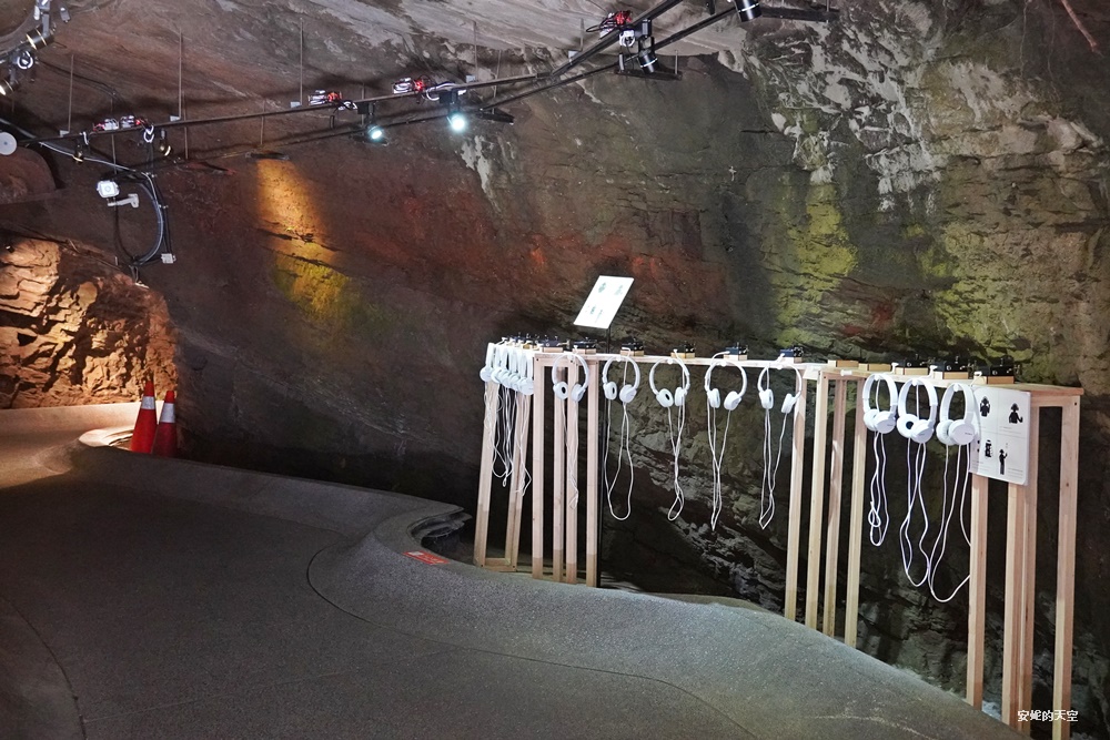 基隆市全台防空洞最多的城市,信二防空洞是其中最大的一座,在八十多年前曾作為日軍的暫時指揮所,這個LISTEN TO THE LIGHT是藉由耳機與接收器,循著光可以聽見光的聲音,可以戴著耳機在防空洞裡走動,尋找光的聲音,是個相當有互動性的展品。