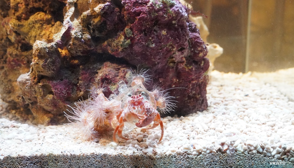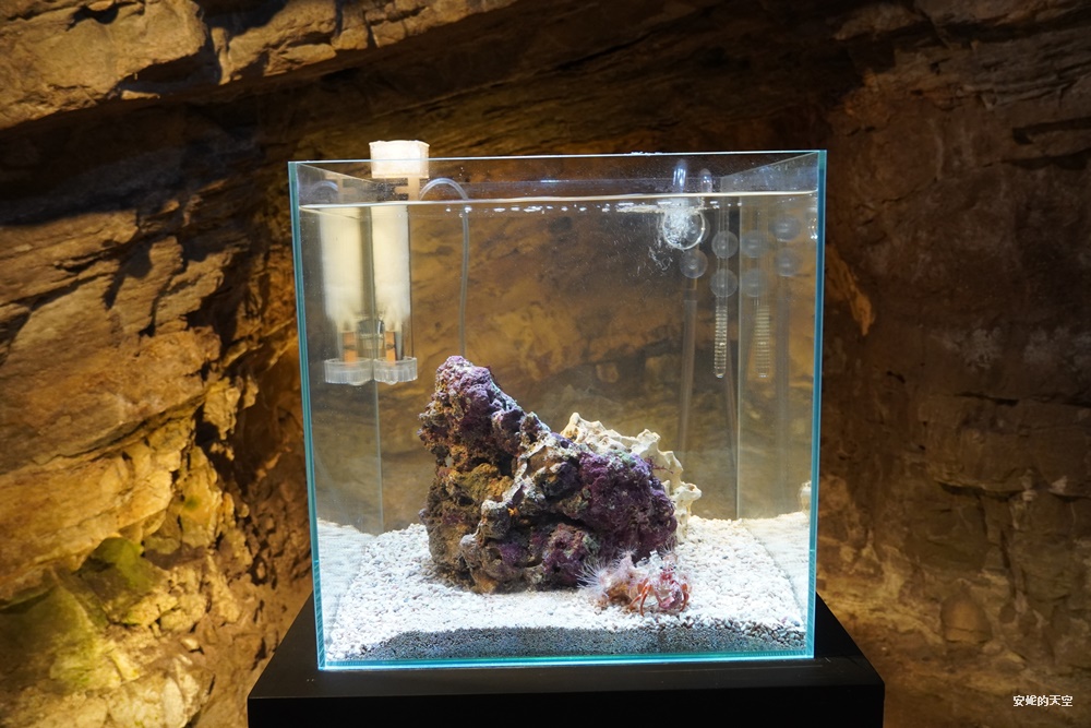 這個展讓我相當的意外,原本以為只是一個平凡的水族箱,裡面的寄居蟹也不罕見,沒想到藝術家竟然用3D列印寄居蟹的庇護所,讓他們可以隨時換殼,寄居蟹看來很滿意這個新家,在水族箱裡開心地走來走去,相當可愛。