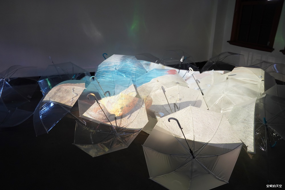 我很喜歡這件作品,基隆多雨,雨傘是基隆人的基本配備,光影落在一把把雨傘上,投射的全是基隆生活的縮影,彷彿映照出無數生活片段,也折射出這座城市的日常與韌性,是一幅專屬於基隆的生活縮影。
