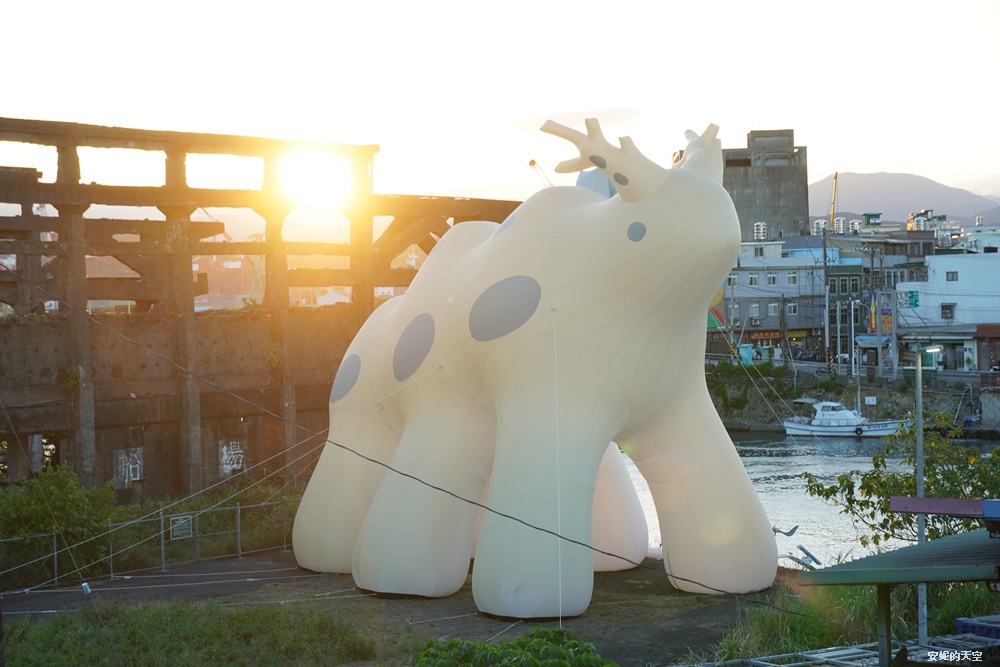 來自光之森的生物-光獸,高達18公尺,坐落於阿根納造船廠,於廢墟、海洋之間,被海風吹拂而有韻律的搖擺,奇幻與純真的風貌,為基隆這座海城,注入童趣的情調,夜晚也將微光,灑滿整片海域。