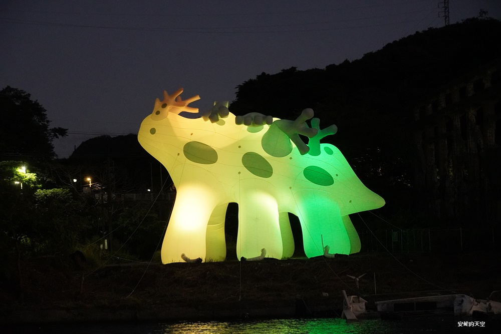白天是可愛充滿童趣的山獸,到了晚上也會點燈,在基隆市區 裡格外亮眼。