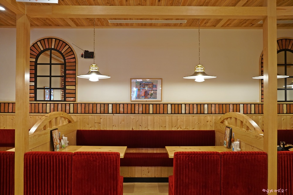 標誌性的紅色沙發為特製設計,不僅色澤亮眼吸睛,坐感也十分柔軟舒適,無論久坐聊天或放鬆休憩都很合適。店內的壁畫與吊燈更是直接來自日本,細節處處展現濃厚的日式氛圍。