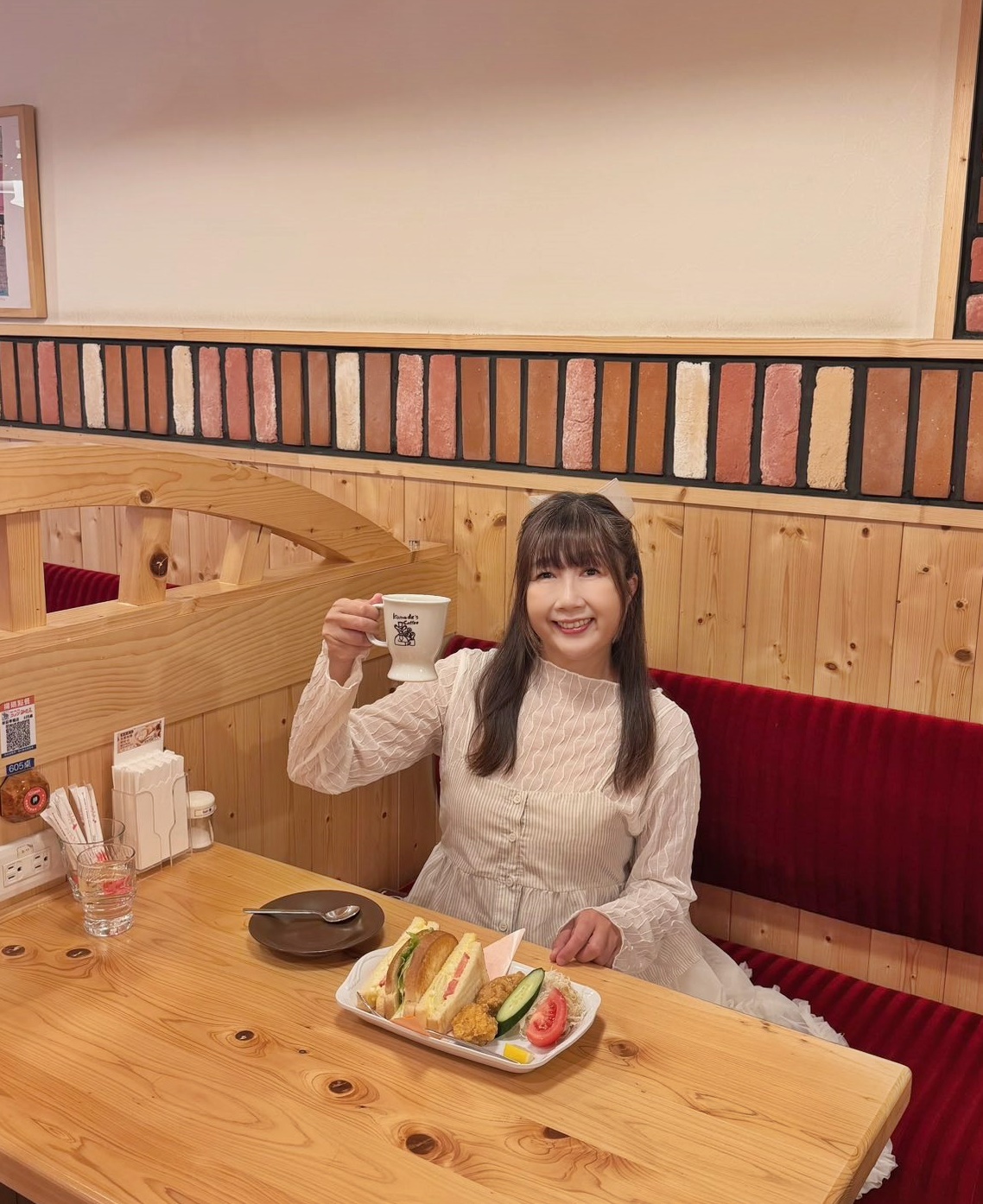 走進店內,空間設計完整呈現日本喫茶店風格:溫潤的木質調、精緻的日式掛畫與吊燈,氛圍沉穩又舒適,讓人彷彿一秒置身名古屋。服務方式也很貼心,只需按下服務鈴,店員就會即時前來協助。