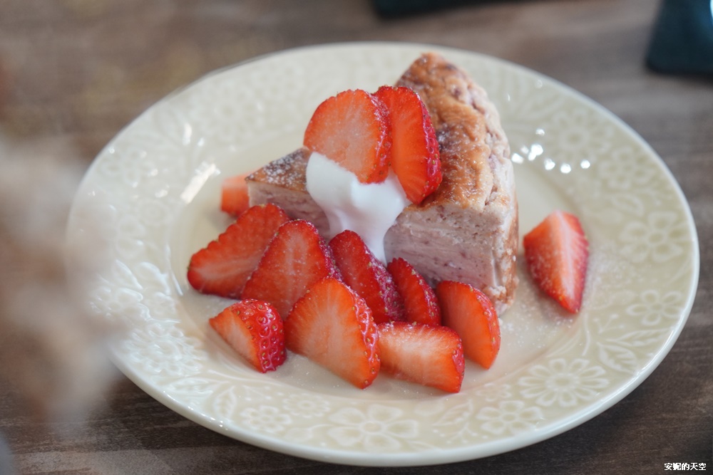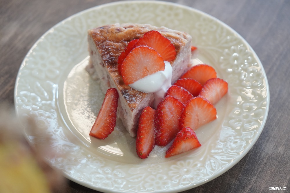 這款巴斯克比較偏向乳酪蛋糕口感,蛋糕體非常的綿密濕潤好吃,不確定奶油是否有草莓,果香氣息很濃厚,一樣搭配好多草莓切片,視覺與味覺都被治癒了。