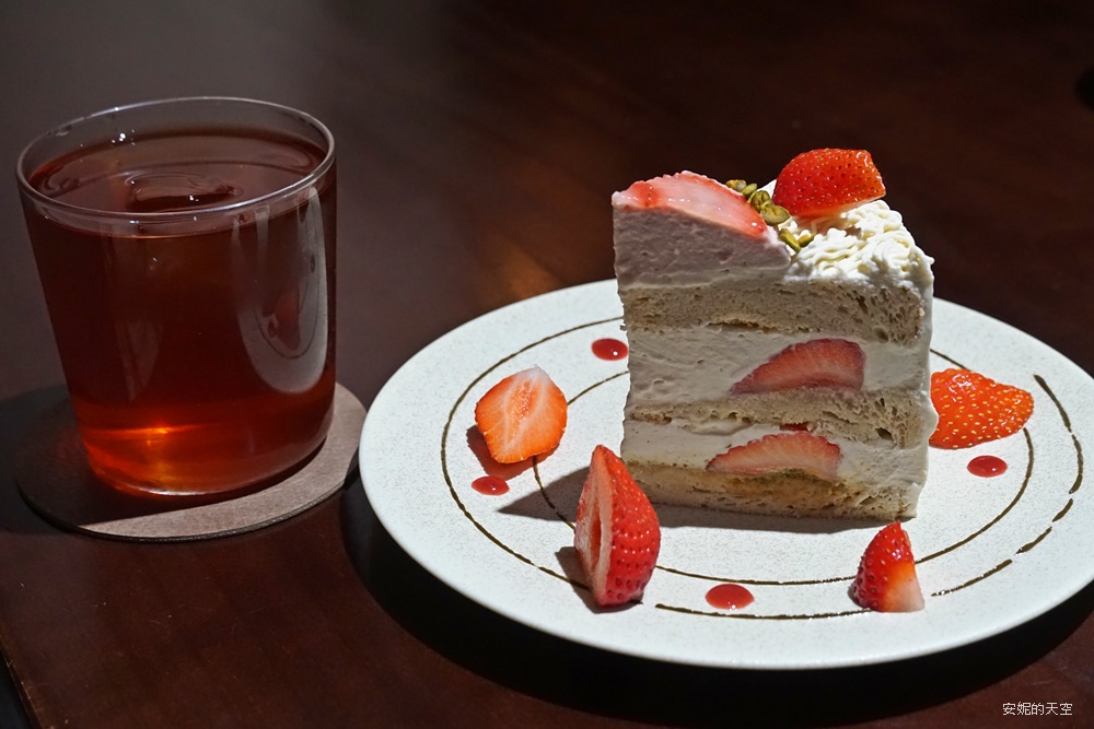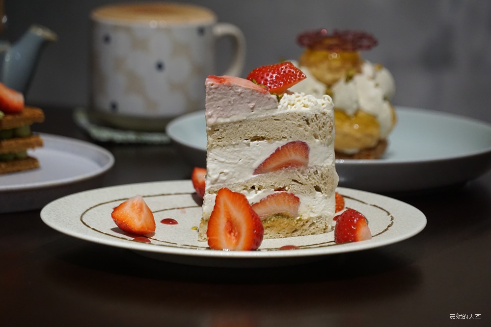 草莓季一定要來份草莓戚風蛋糕才算完美,這份戚風蛋糕奶油很細緻,口感非常的輕盈,即使交融了開心果,口感不甜不膩,富有多層次的風味,只能說開心果與草莓搭配是一絕,是這個冬天不能錯過的甜點。