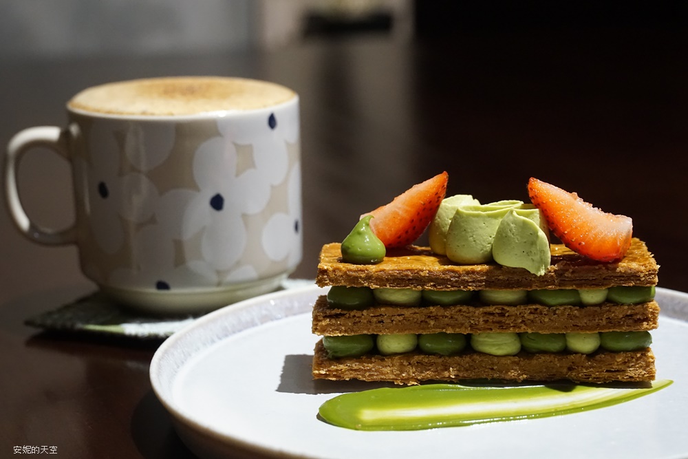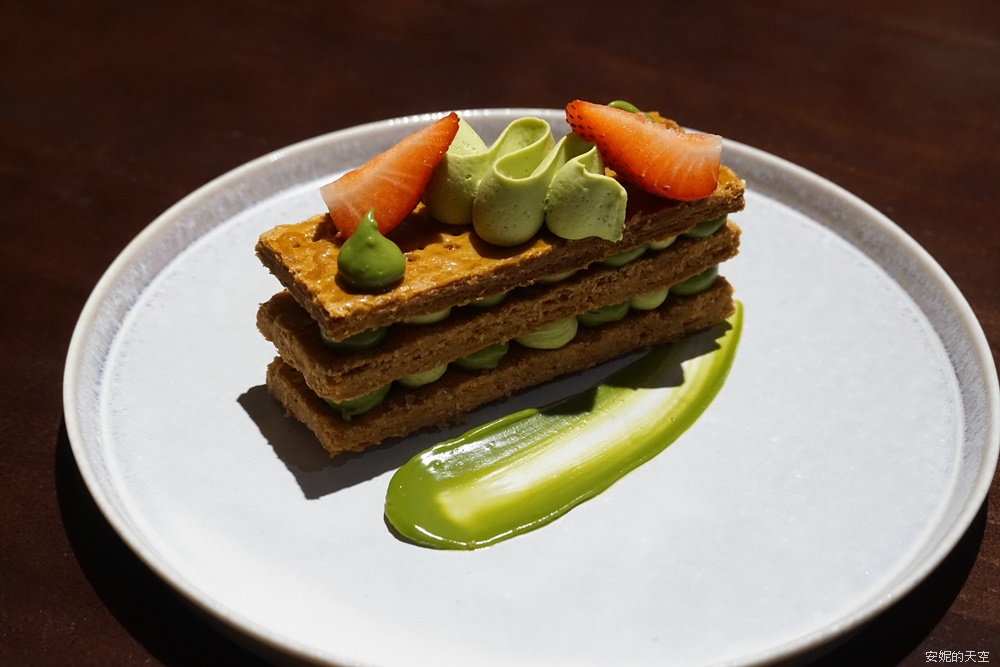 Meteore Labo的甜點擺盤都很細膩,抹茶控絕對要來吃這道抹茶千層酥,千層酥直接給三片,雙層的抹茶給好給滿,抹茶品質很好,就連不敢吃抹茶的我都很愛,千層酥搭配抹茶非常的合拍,抹茶茶味濃郁,搭配香酥的千層派絕頂好吃,點綴的草莓片也很加分。