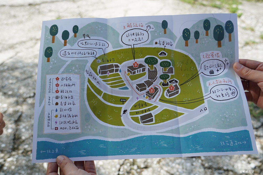 這裡的玩法很特別,沒有導覽員解說,只有一張地圖與任務卡。我們自己按圖索驥,去森林裡找尋部落的動物與故事。耳邊除了蟲鳴鳥叫,還有海浪的聲音在回應,那一刻我才發現,原來這片森林,就貼著東海岸。走著走著,森林步道的盡頭就是海,藍得美得讓人屏息。