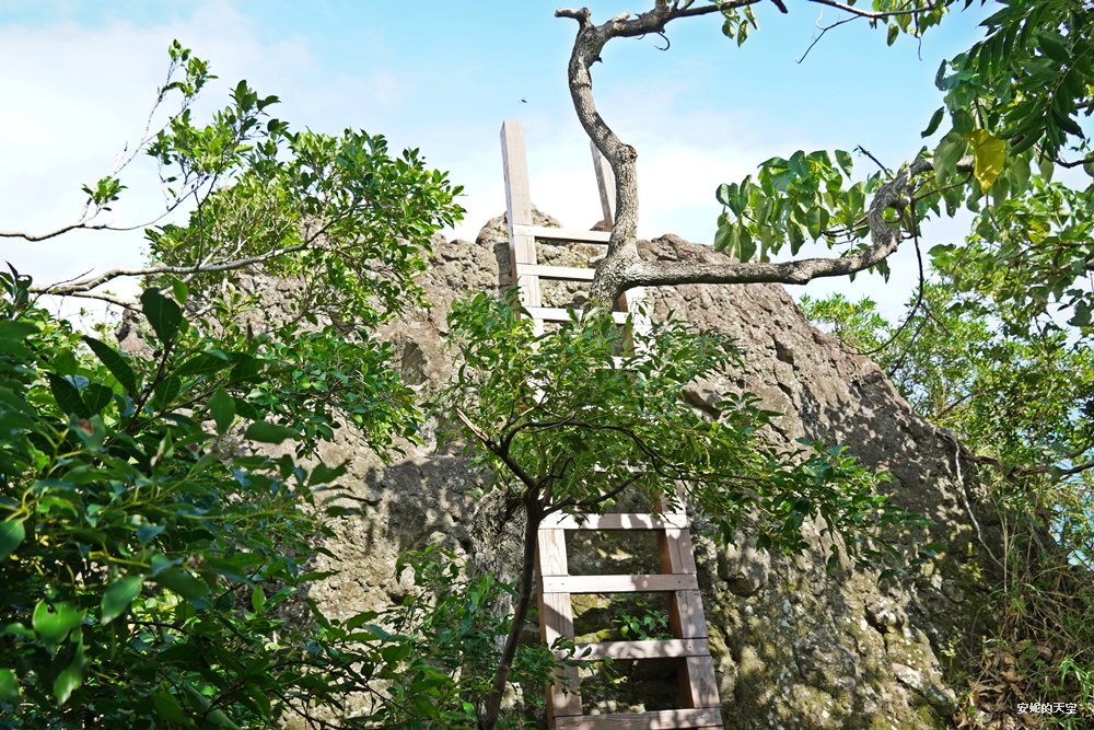 穿越一段林間小徑,眼前豁然開朗——竟是一片蔚藍的海。