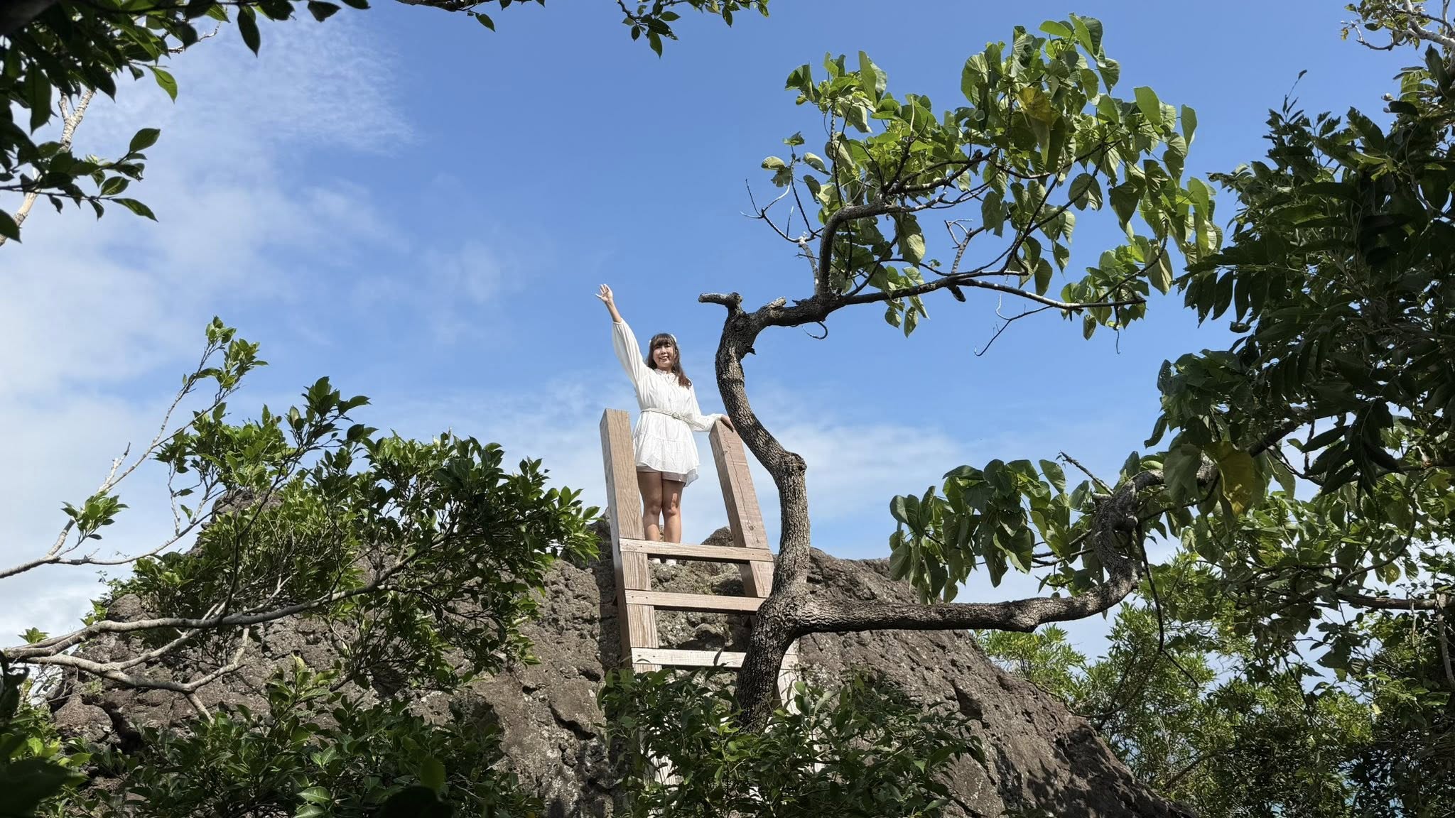 巨石上的「平台」並非平坦,崎嶇的岩面讓站立或坐下都需要一點勇氣。可當我們穩住身體,凝望眼前無邊的海洋,海風輕拂臉龐的那一刻,所有的煩惱似乎都被吹散,隨風飄向遠方,只剩下純粹的自在與寧靜。