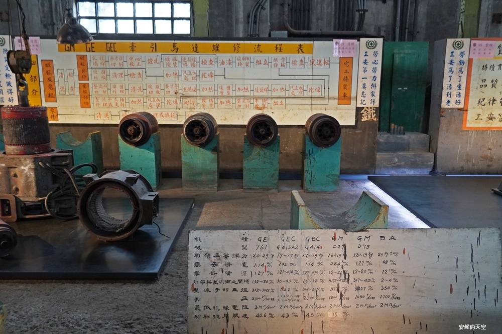組立工場主要是陳列列車,而柴電工場則是深入列車的內核,工廠的最深部,所以牆面上總是充盈著安全服務、品質效率等職人字樣,是鐵道工藝中最深刻的呈現。