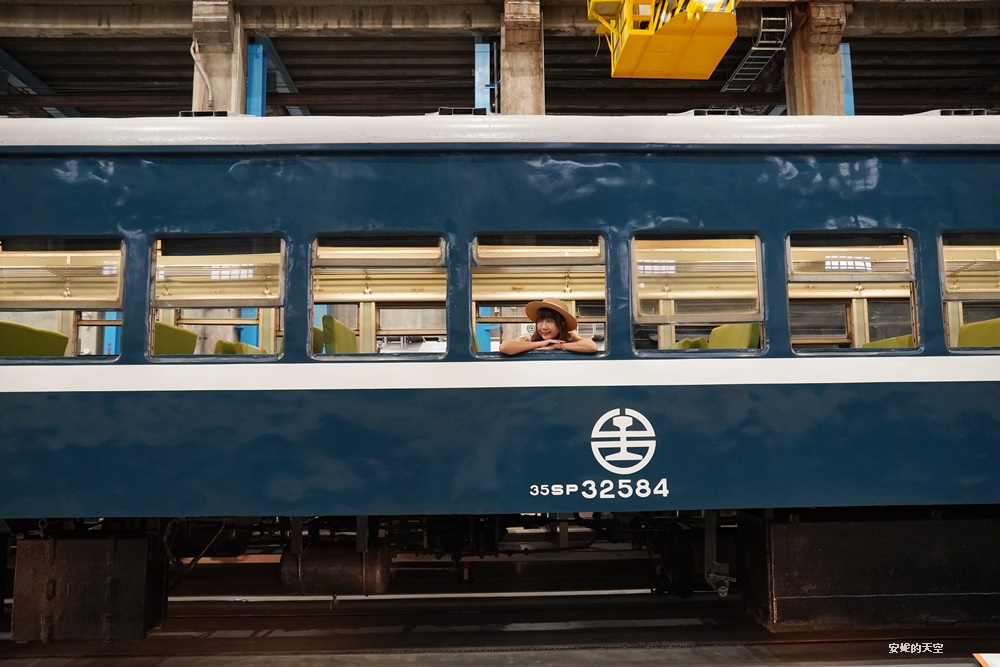 若想更深入感受鐵道的靈魂,別錯過需購票入場的 「柴電工場」(票價$100)。這裡是火車的心臟,收藏著各式火車機具,還能登上藍皮火車,親身體驗那個可以開窗、吹著電扇、載運貨物奔馳的年代。