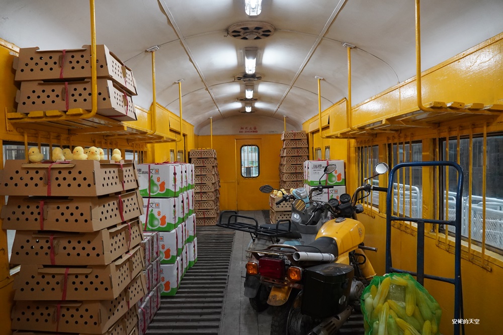 以前的普通號列車有一個車廂是專門用來運輸機車或是大型貨物,現在已經不復可見。