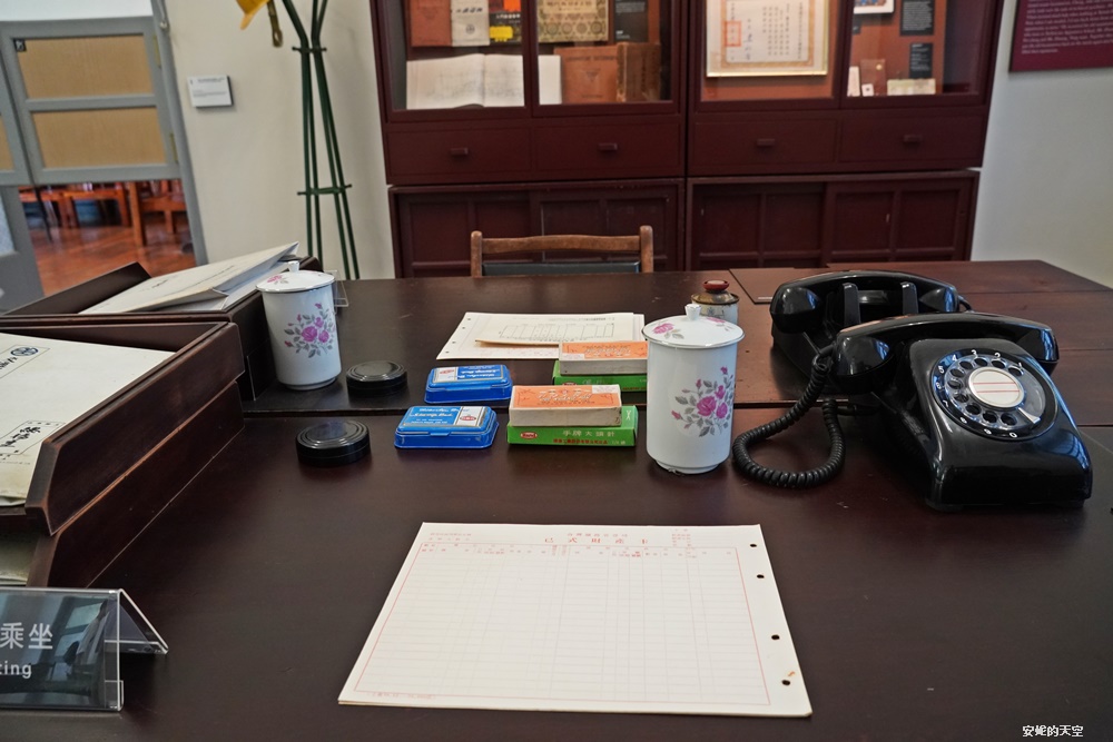 辦公桌上擺著公文、印章和茶杯,彷彿有人正在忙碌辦公。偶爾電話響起,整個場景活靈活現,瞬間拉近了我們與過去工作的距離,真是超有即視感!