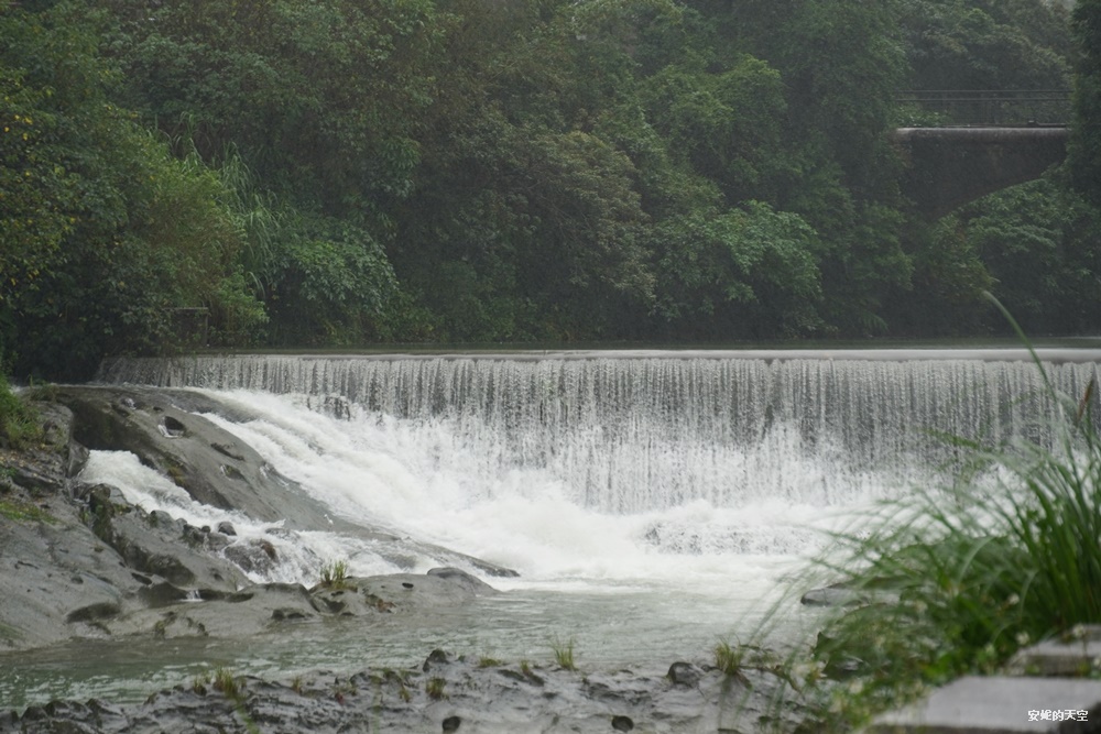 水,對暖暖而言格外珍貴。這一天正值大雨滂沱,眼前的巨大攔河堰在雨水沖刷下,水流翻湧、氣勢磅礴,震撼得讓人屏息。水從高處傾瀉而下,彷彿能感受到當年工程設計者對水流力量的精準掌握。