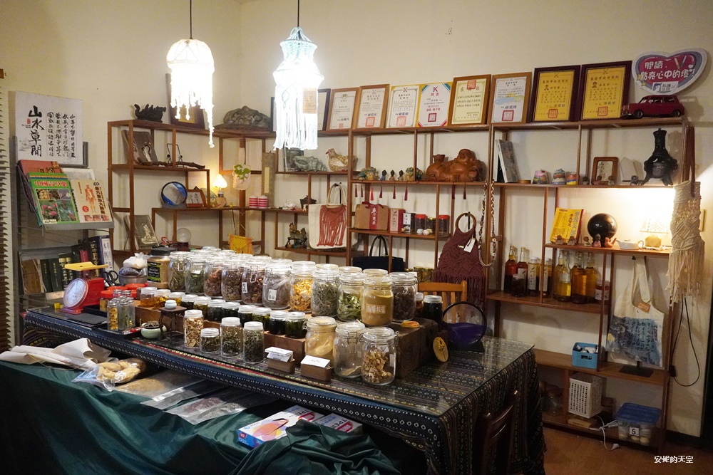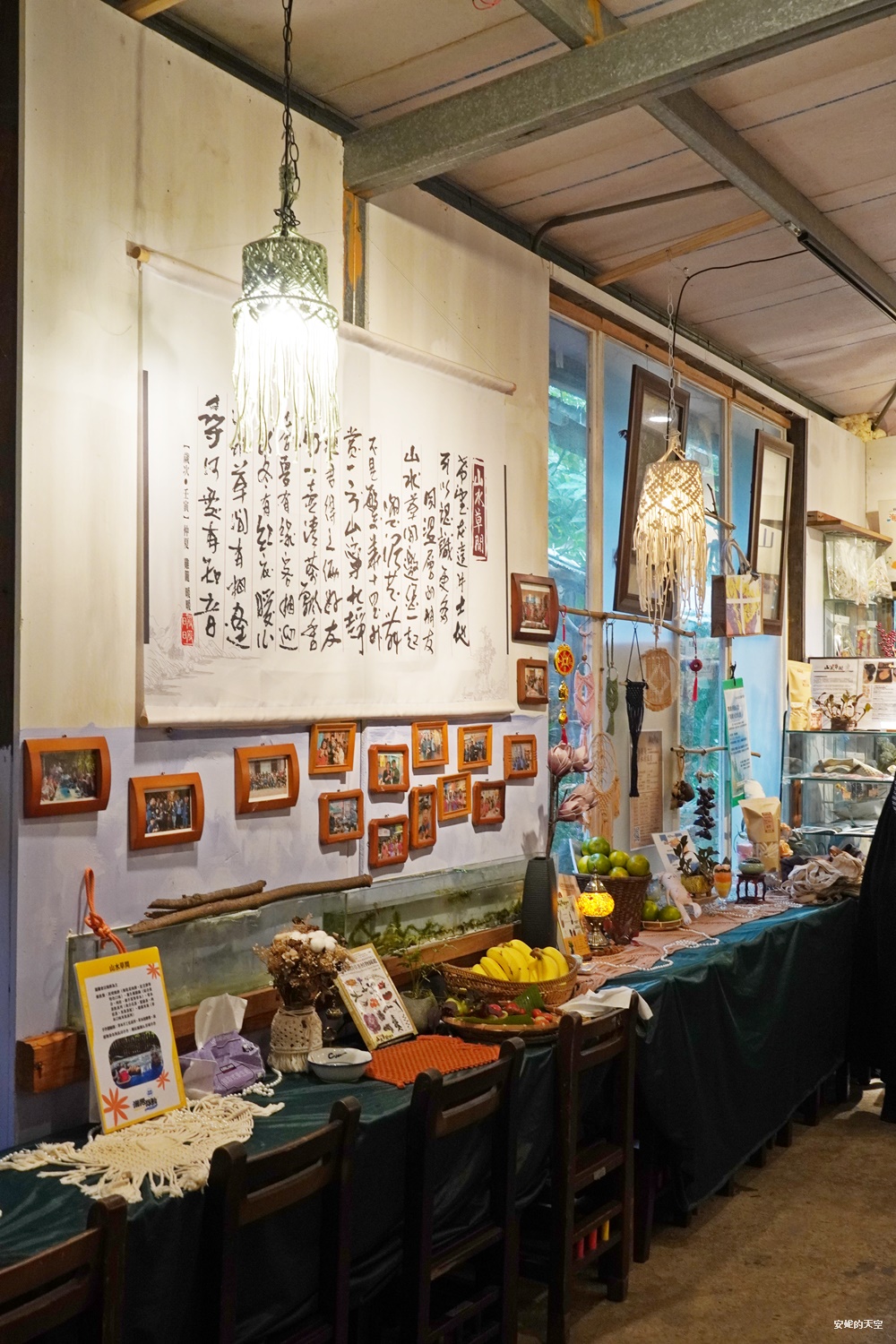 這裡原本是店主父親的菜園,也是他研究採藥的基地。隨著時間推移,店主將母親的伴手禮品牌灶咖延伸至此,再加上妻子精湛的手作技藝,讓山水草間逐漸成為一座手作藝術的殿堂。同時,它也是暖暖地區居民喜愛聚會、交流的地方,充滿人情味與生活氣息。