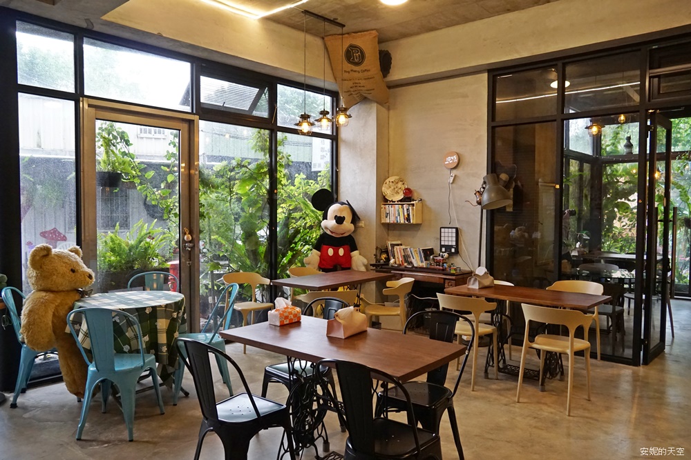 瑞格咖啡的空間很寬敞,擺設童趣質感中也帶有居家感,許多可愛的布偶與老物件、書籍穿插其間,是個沒有壓力的空間。